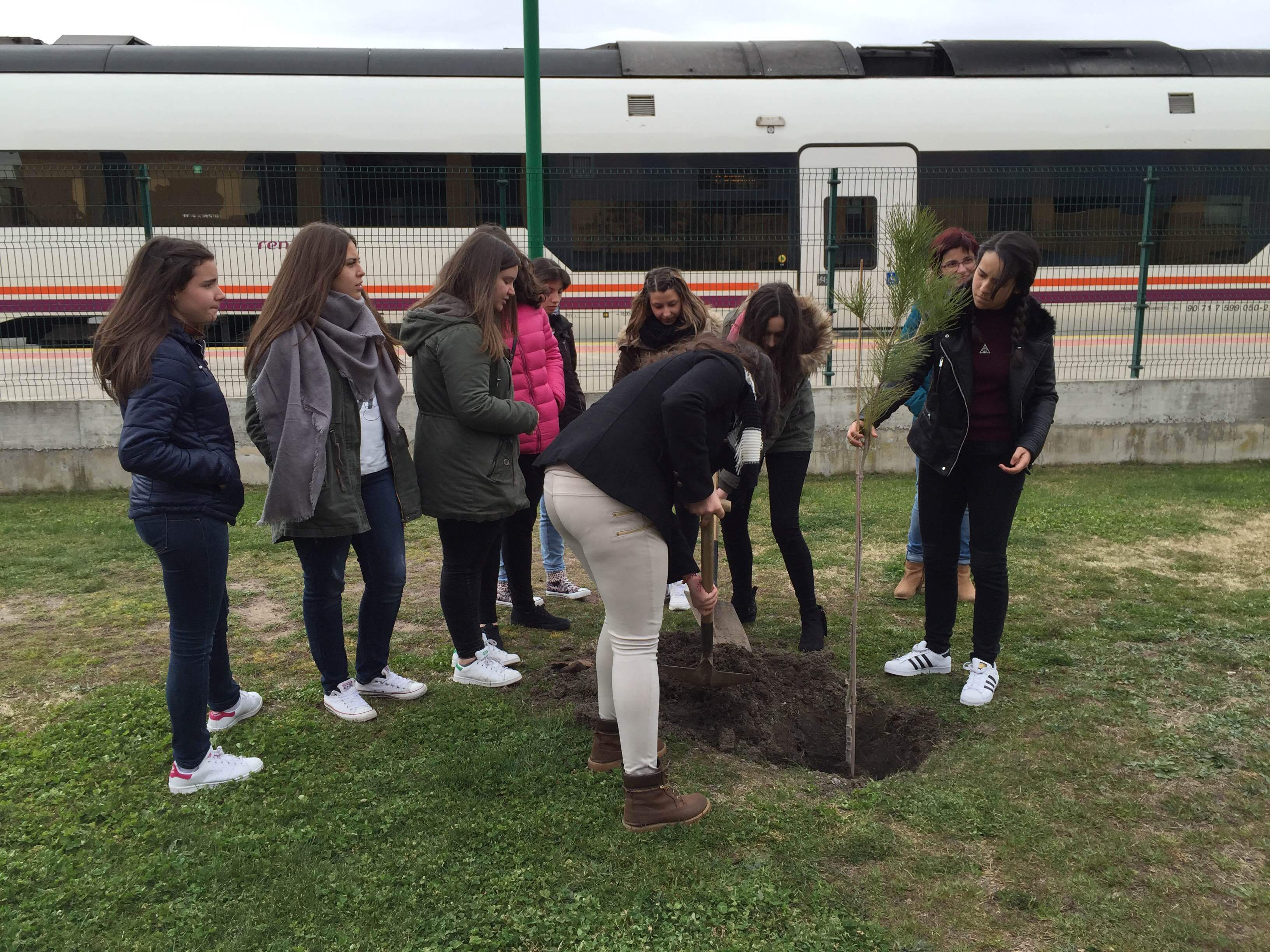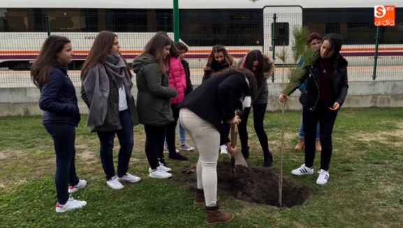 PEÑARANDA | Escolares de los colegios Miguel de Unamuno, Severiano Montero y La Encarnación participaron en esta plantación realizada en sus respectivos centros y la estación de tren