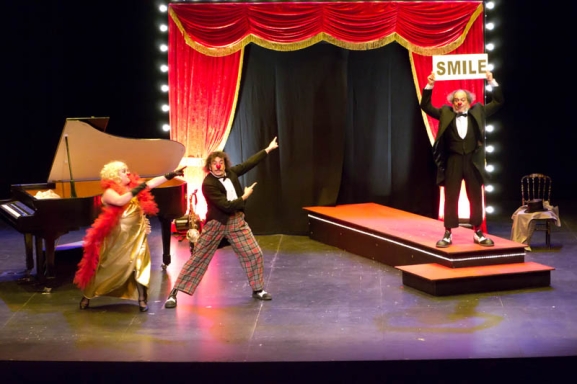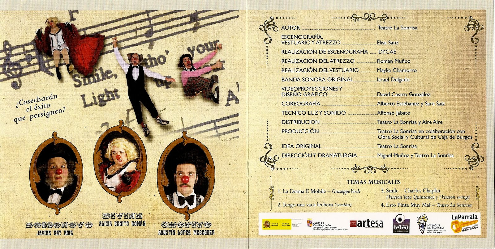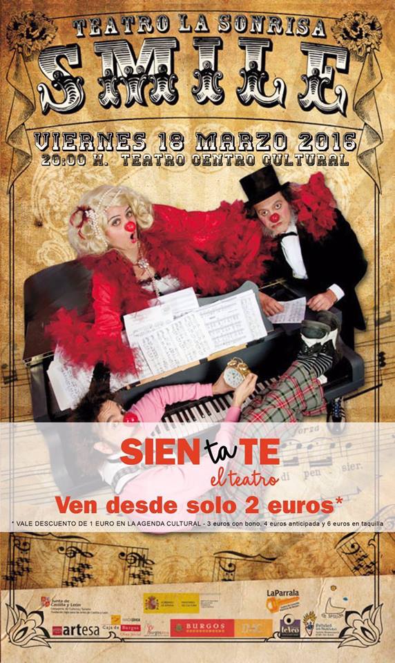 'Smile' es un espectáculo de clown familiar con voz y piano en directo en el que un empresario del espectáculo de los años 30 al borde de la ruina quiere levantar su empresa contratando a una gran diva extranjera y excéntrica. Con la ayuda de su pianista, con el que lleva toda la vida trabajando, intentarán sacar adelante el espectáculo originando un sinfín de situaciones hilarantes en los ensayos previos. El coste de la entrada es de 3 euros con bono, 4 anticipada y 6 euros en taquilla, precios que se pueden reducir un euro por entrada aportando el vale descuento que se incluye en los folletos de la programación cultural.