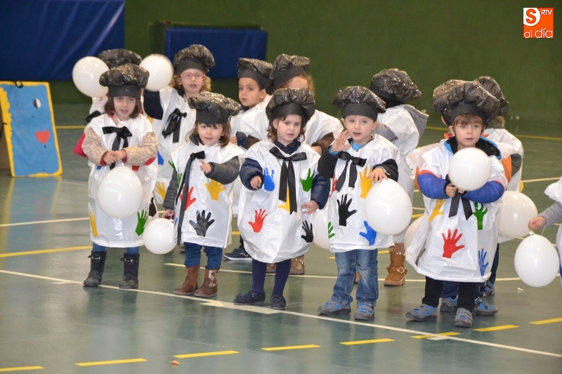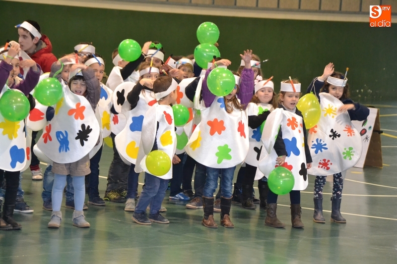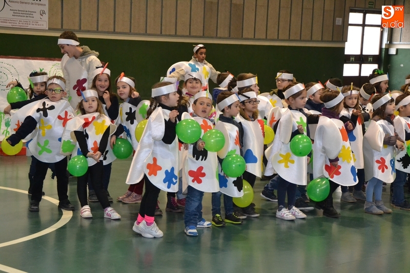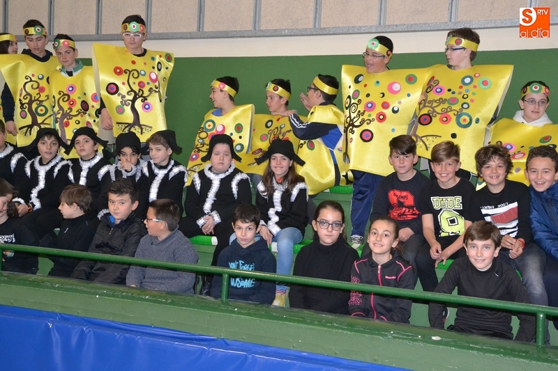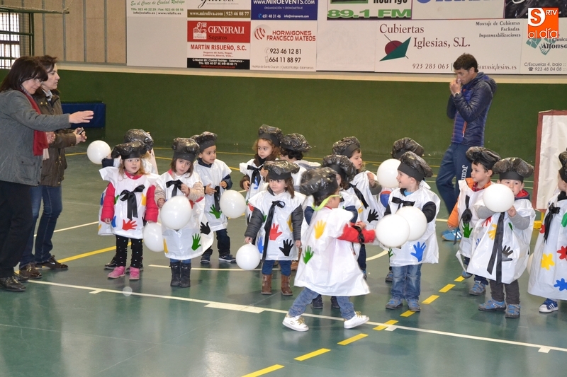 Por grupos, los alumnos fueron saliendo al centro de la pista para realizar una serie de bailes al ritmo de canciones relacionadas con la pintura. La sesión la abrieron los alumnos de Educación Infantil y Especial, con el baile Los colores, siguiéndoles todos los de Educación Primaria.