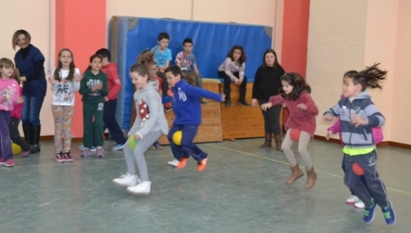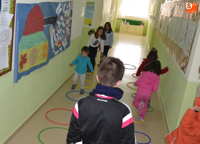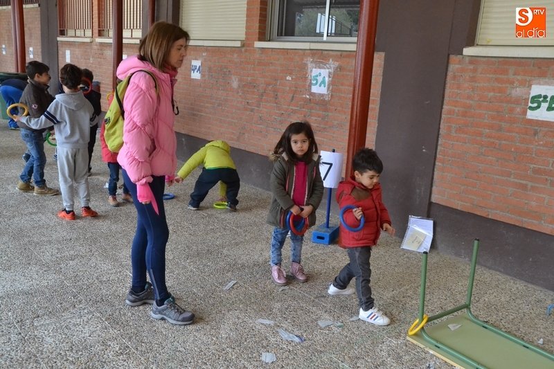 En este sentido, los grupos se repartieron por el interior y el exterior del Colegio (la lluvia complicó la actividad) para probar de forma rotatoria juegos de toda la vida, como la cadeneta, la rana, el lanzamiento de herradura o los bolos.