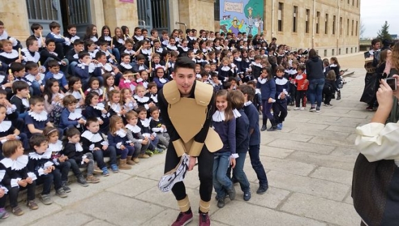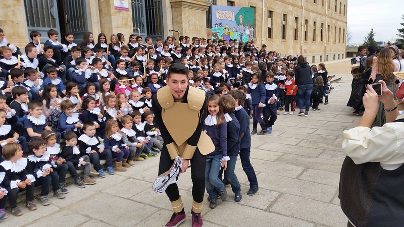 Los escolares pusieron en escena varios momentos de la vida del escritor junto con los personajes más relevantes de 'El Quijote'