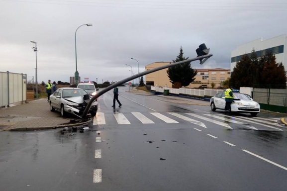 Un turismo chocó esta mañana contra un semáforo situada en la acera de la calle Filiberto Villalobos cerca de la salida norte de Guijuelo. El impacto, que se produjo en torno a las siete de la mañana, derribó parcialmente la señal luminosa de tráfico q