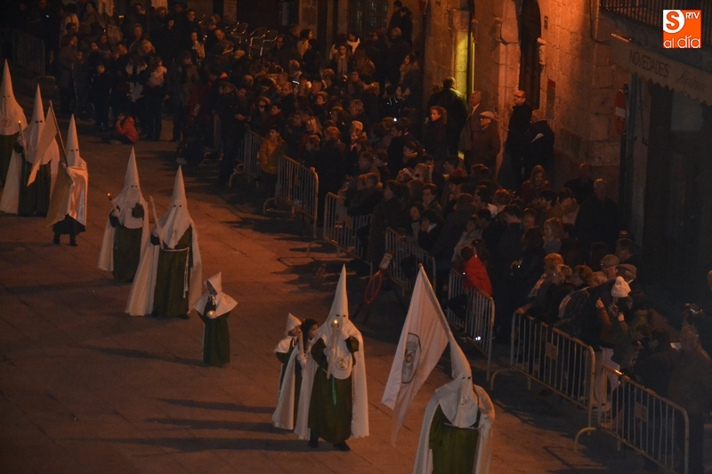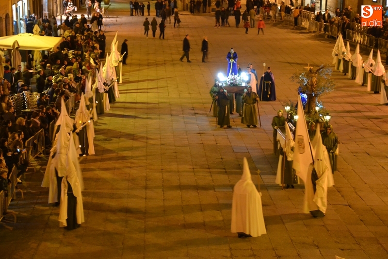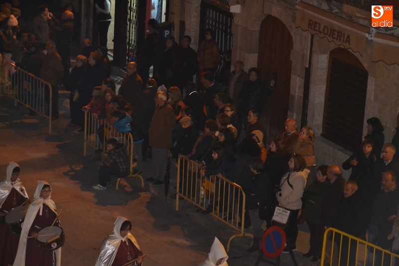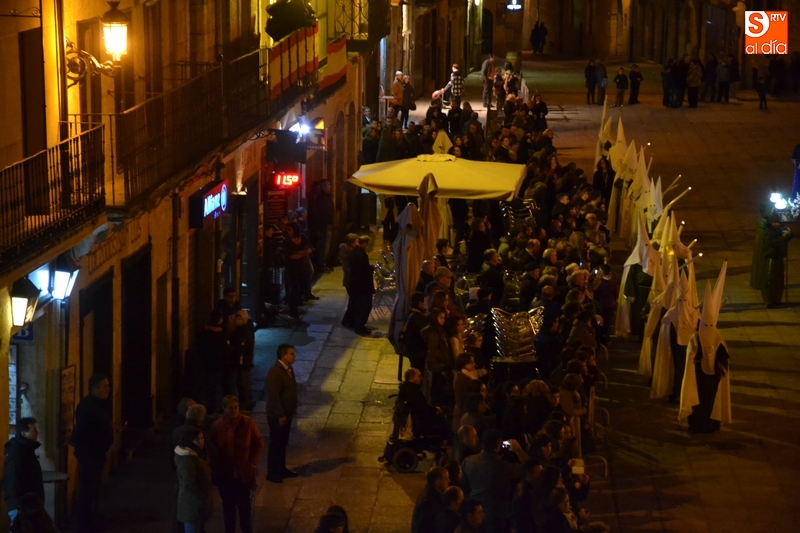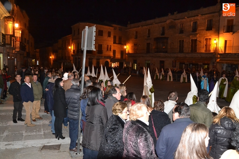 El primer paso por la Plaza Mayor, narrado por el capellán de la Cofradía, Ángel Martín Carballo desde la balconada del Ayuntamiento, fue seguido por bastantes mirobrigenses, la mayoría de los cuales se marcharon a casa tras ese momento. De este modo, el recorrido final de la procesión por la Rúa del Sol, calle Gigantes, Campo del Pozo, Campo del Pozo, Plazuela Cristóbal del Castillejo, San Juan, Colegios, Velayos, Sánchez Arjona, de nuevo Plaza Mayor y Cardenal Pacheco fue seguido por poco público.