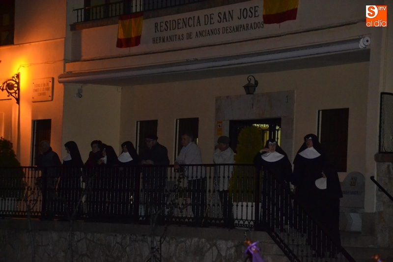 En este sentido, las varas que portan durante la procesión los responsables de la Cofradía lucieron en su parte superior un crespón negro. Además, en el paso de la comitiva por la Plaza Mayor, el sacerdote Prudencio Manchado Vicente invitó a rezar un Padrenuestro en recuerdo de los fallecidos, porque "todos somos Iglesia del Señor".