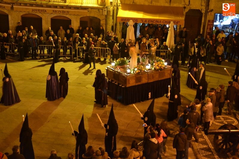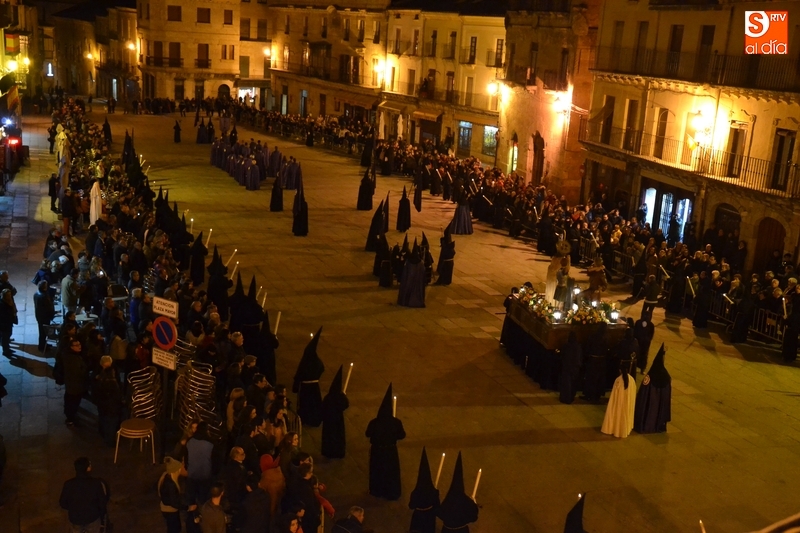 La Banda fue en la parte inicial de la comitiva, que pasó por la calle San Juan, Plazuela Cristóbal de Castillejo, Campo del Pozo, Enrique Zarandieta, y Rúa del Sol para alcanzar la Plaza Mayor. Justo antes de llegar la procesión al ágora mirobrigense, fue necesario evacuar en ambulancia a una persona que se encontraba mal. La procesión abandonó la Plaza por la calle Cardenal Pacheco en dirección a la Catedral de Santa María, a donde llegó una hora y diez minutos después de salir.