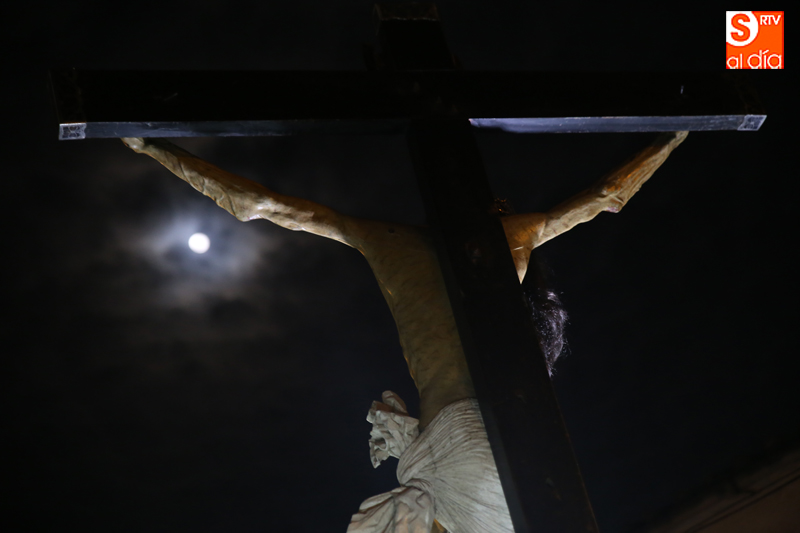 La tarde amenazó lluvia, quizás porque el Cristo de San Jerónimo también es conocido como el Cristo de los Labradores, quizás porque los agricultores se lo pidieron, quizás por eso durante la tarde llovió. Sin embargo el Cristo de San Jerónimo respetó su procesión. Lo hizo por primera vez tras su reciente y brillante restauración. La luminosidad, el gesto de dolor de la imagen y la caracteristica túnica roja de los que le portaban quebraban la oscuridad de la noche.