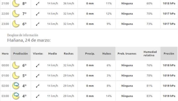 Entre las 21.00 y las 3.00 horas no se esperan precipitaciones
