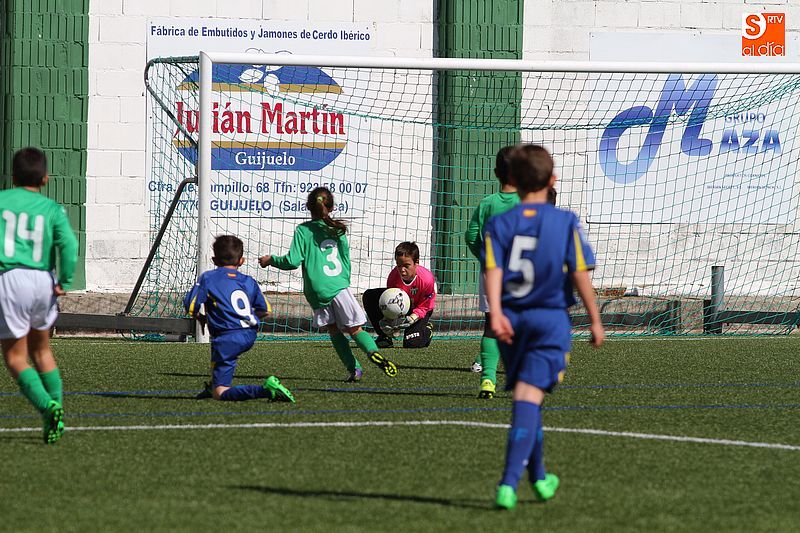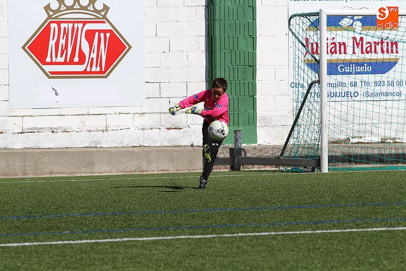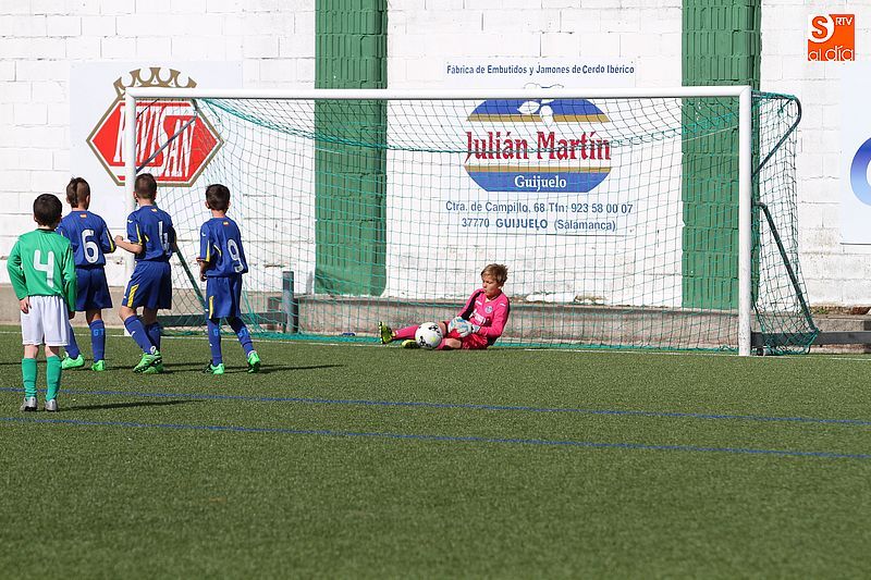 El Club Deportivo Guijuelo Benjamín B dejó el pabellón local muy alto en el primer encuentro de la Desafío Cup categoría Benjamín en Guijuelo. El conjunto verdiblanco perdió por tres goles a uno en un encuentro emocionante en el que ambos conjuntos tuvieron opciones de ganar y en el que los visitantes tuvieron más suerte a balón parado. El Getafe se adelantó en dos ocasiones en la primera mitad y marcó un tercer gol en la segunda. El Guijuelo marcó su tanto en la recta final del encuentro en el rechace de un penalti que detuvo el joven guardameta del Getafe.