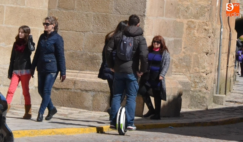 La presencia de mirobrigenses y forasteros en las calles fue tan amplia a lo largo del Jueves Santo que incluso se pudo ver a personas recorriendo la ciudad -como se puede ver en un par de imágenes- en segways, los artilugios electrónicos de dos ruedas que permiten el desplazamiento sin realizar ningún esfuerzo.