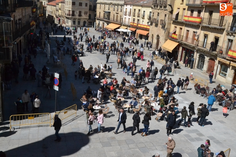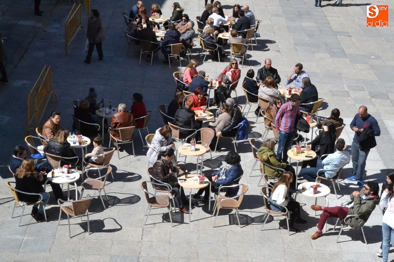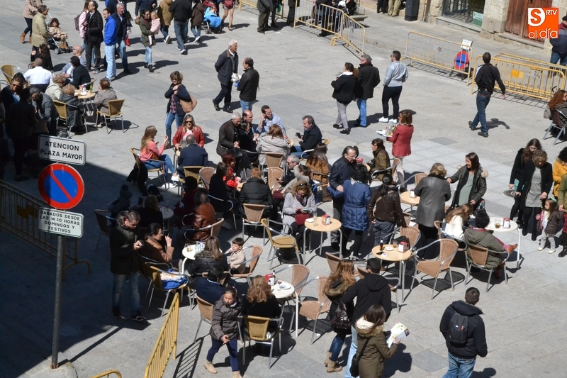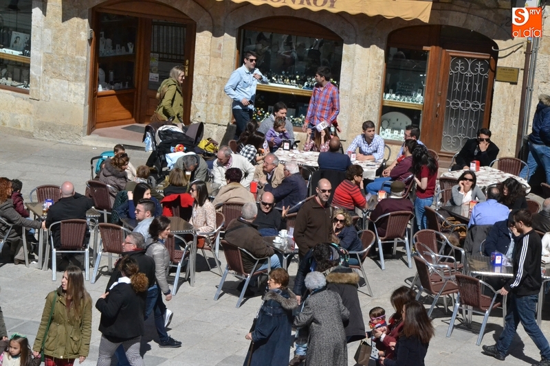 Esta masiva presencia de público al aire libre se vio claramente favorecida por la excelente meteorología que hizo durante todo el día, lo que permitió disfrutar de las terrazas instaladas en calles y plazas, destacando por ejemplo las de la Plaza Mayor, Plazuela del Buen Alcalde o calle Laguna.