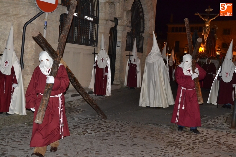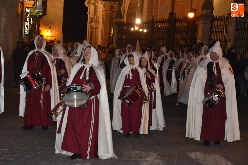 La jornada de Miércoles Santo concluyó en Ciudad Rodrigo con la procesión de la Ilustre Cofradía de la Santa Cruz, a la que le tocó desfilar en una noche bastante fría pero con la compañía de la luna llena. Esta noche de Miércoles Santo no ha sido una más para la Cofradía, ya que ha sido la última con su actual 'formato' procesional.