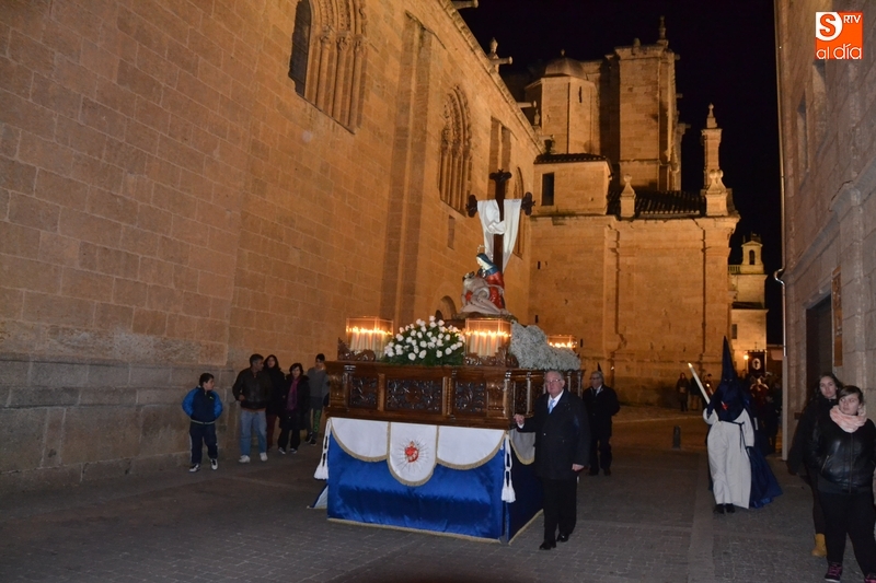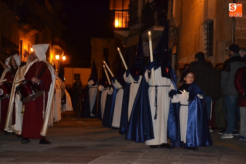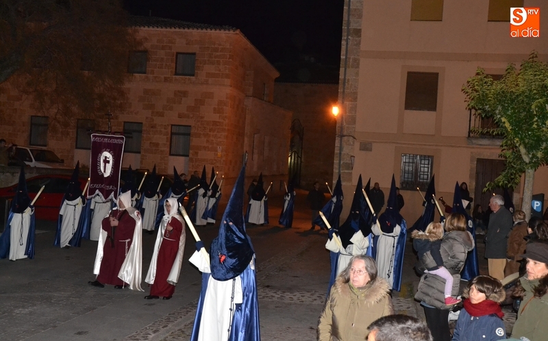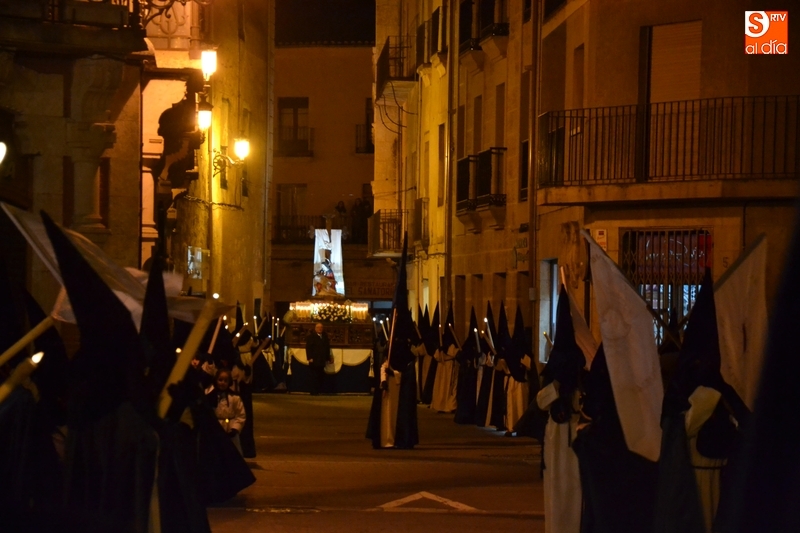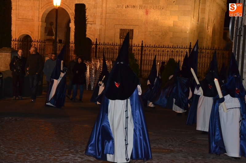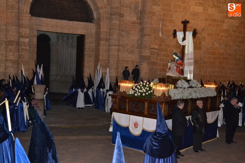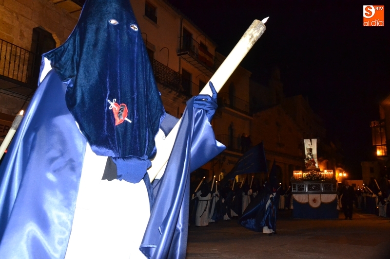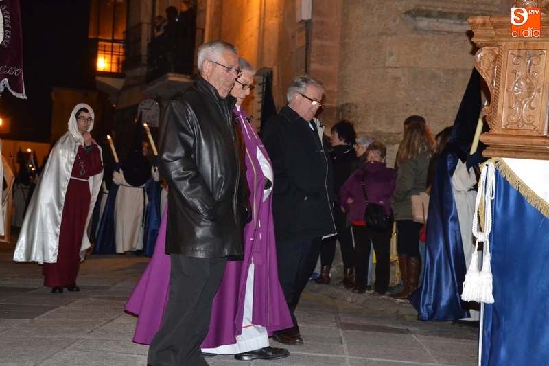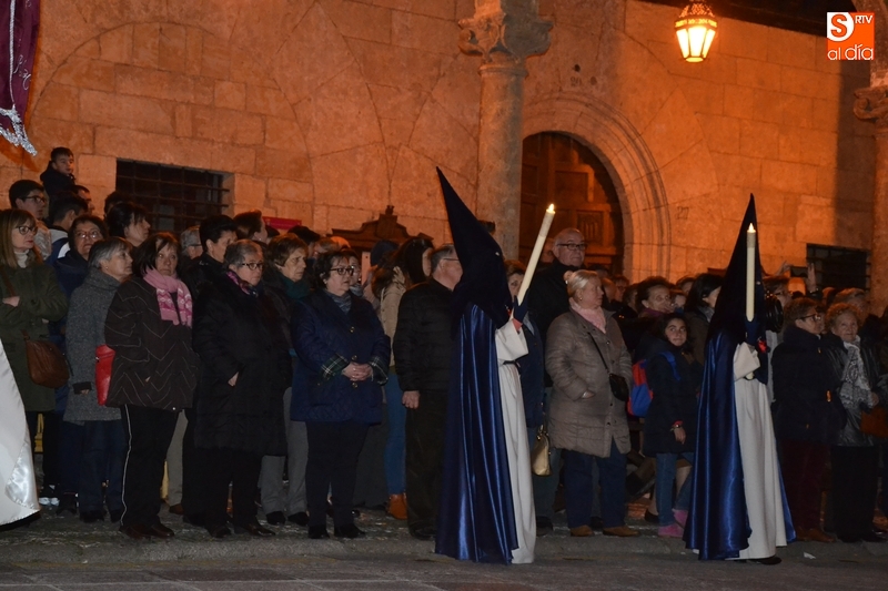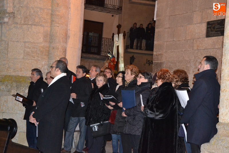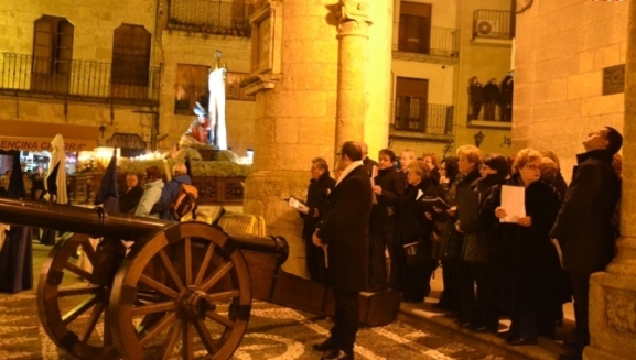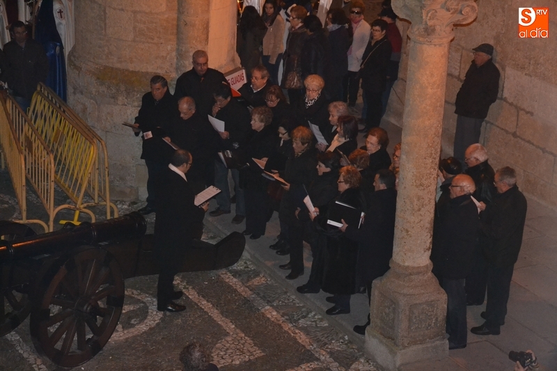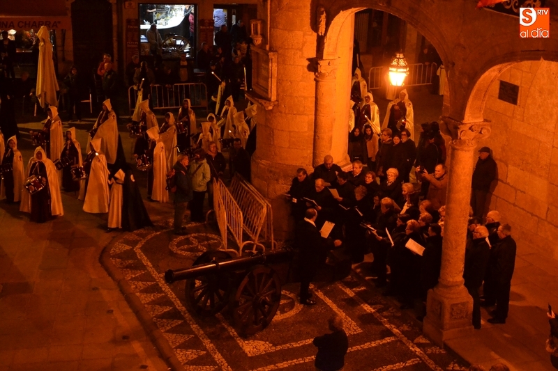 La Semana Santa Mirobrigense estrenó en la noche del Miércoles Santo una de sus principales novedades para este año: la actuación de la Coral Dámaso Ledesma durante la procesión de Nuestra Señora de Las Angustias.