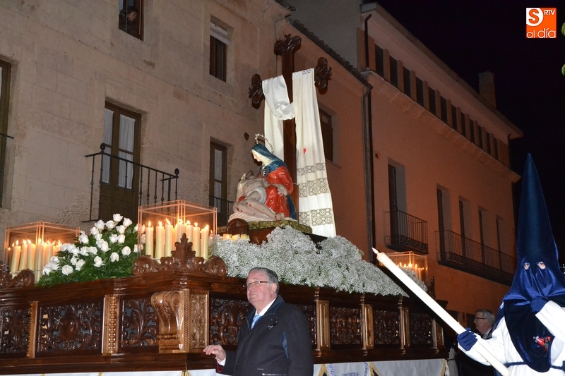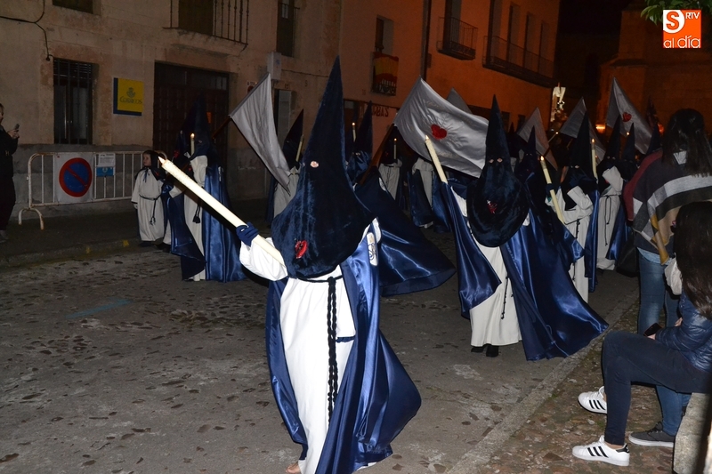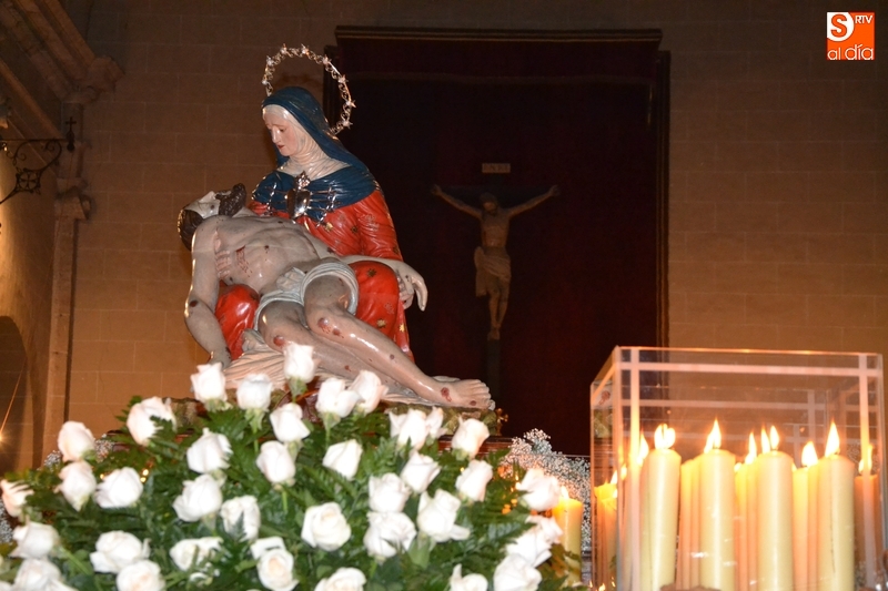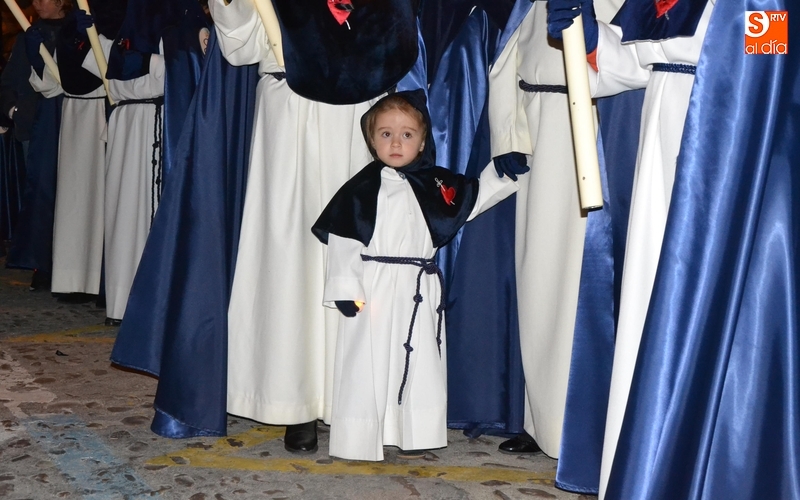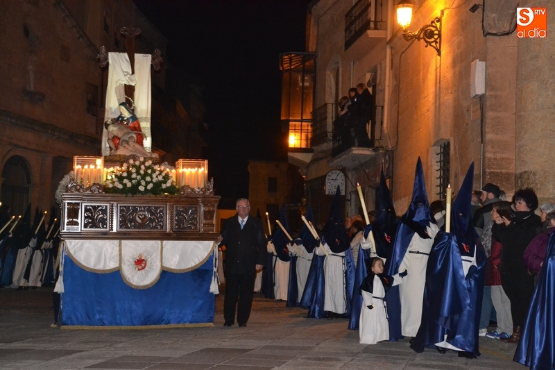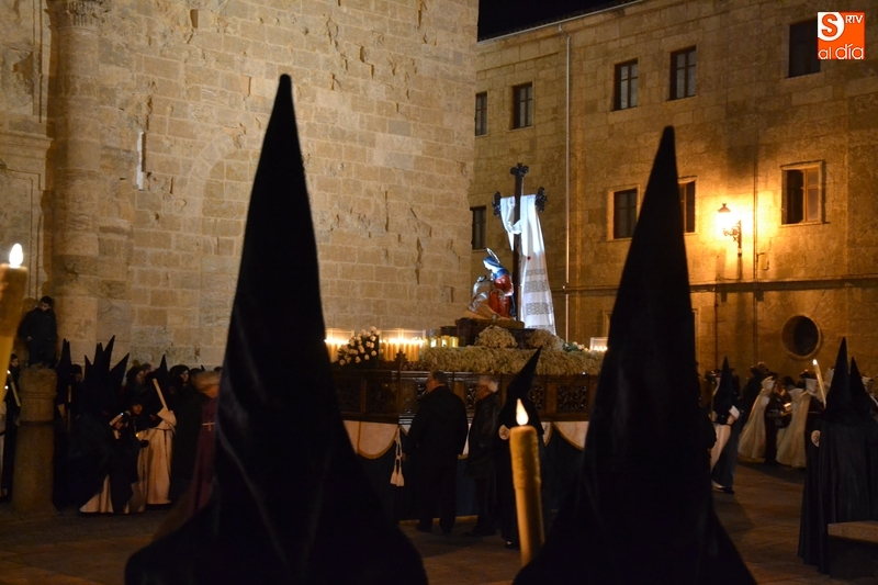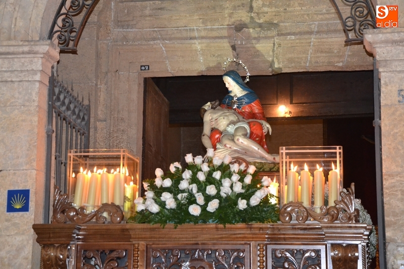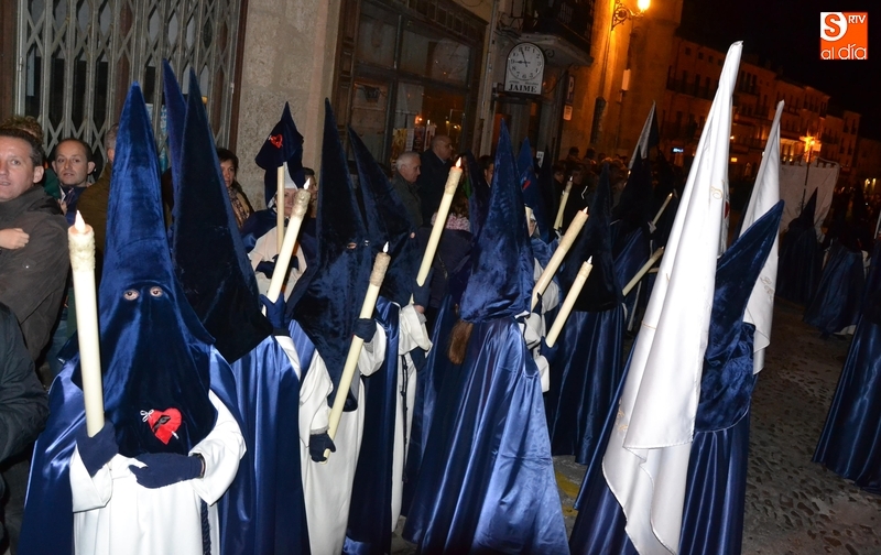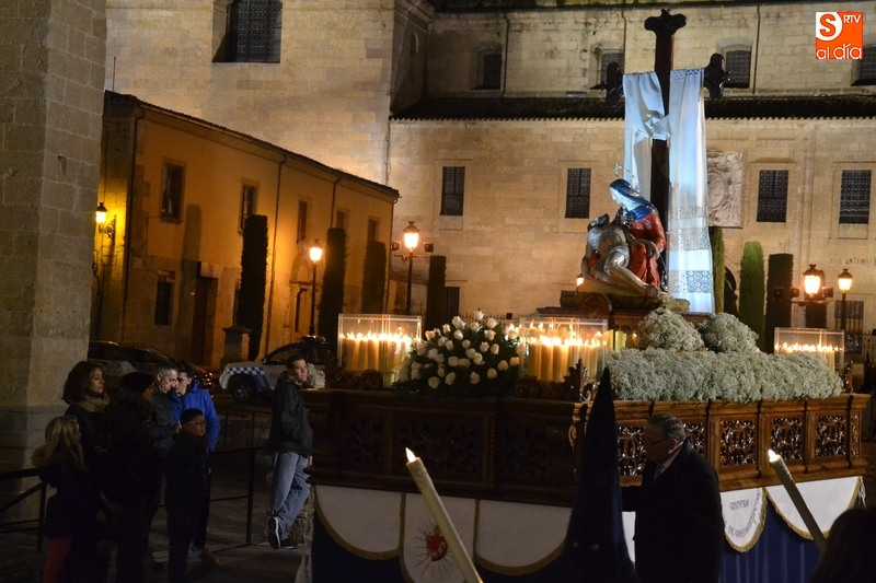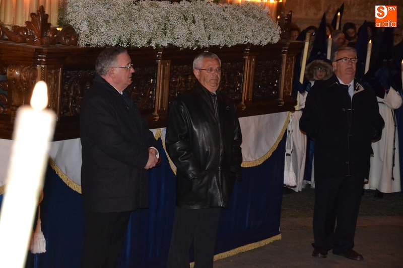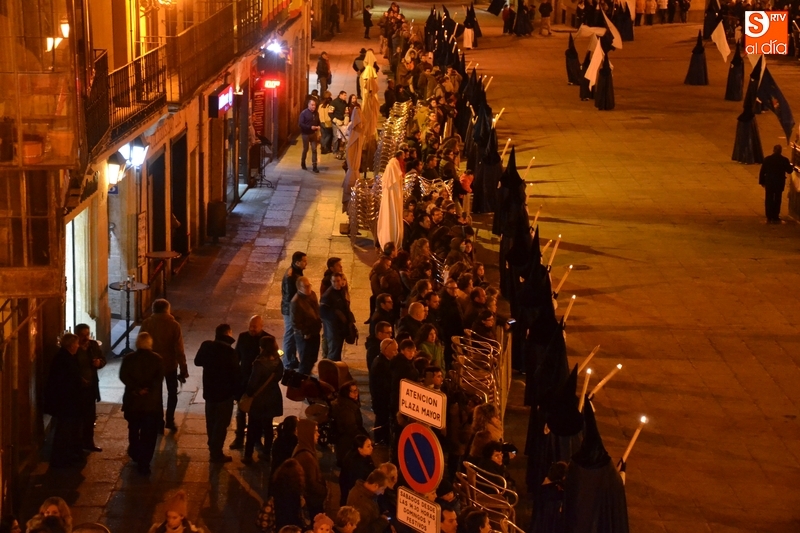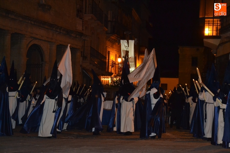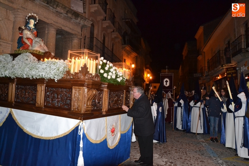 La Semana Santa Mirobrigense estrenó en la noche del Miércoles Santo una de sus principales novedades para este año: la actuación de la Coral Dámaso Ledesma durante la procesión de Nuestra Señora de Las Angustias.