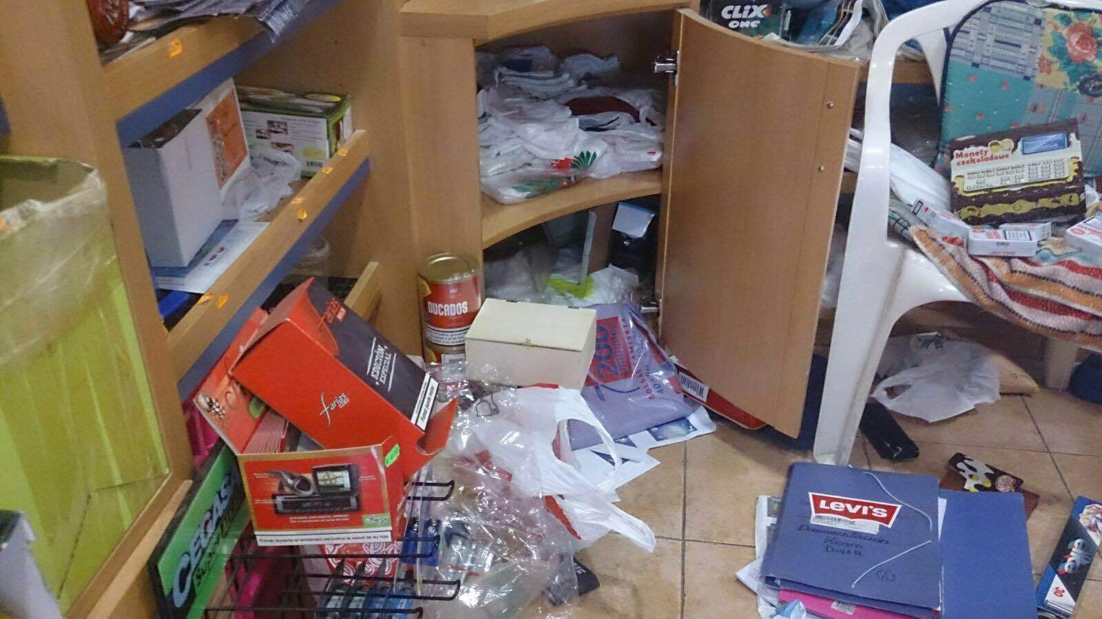 Tras entrar, los cacos sustrajeron una gran cantidad de productos, especialmente tabaco, así como todo el dinero en efectivo que se encontraba en la caja registradora y hasta una hucha, que la familia guardaba en la tienda, que contenía gran cantidad de monedas. Un golpe que se presupone fue largo ya que, además de desvalijar y mover la práctica totalidad de las estanterías, tuvieron tiempo para juguetear incluso con algún producto de limpieza.