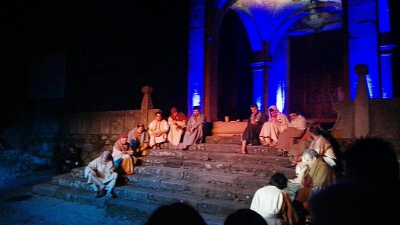 Los integrantes del grupo Cultural Cateja Teatro volvieron a emocionar con una espectacular puesta en escena de 'La Pasión' en el atrio de la iglesia parroquial de La Alberca con la que sorprendieron a los numerosos vecinos y turistas que anoche tuvieron el privilegio de ser testigos de una representación cargada de realismo.