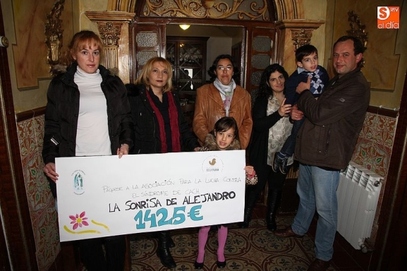 El grupo folclórico El Torreón de Guijuelo hizo entrega esta mañana de los frutos de la acción solidaria a favor de la Sonrisa de Alejandro. En total se recaudaron 1425 euros, que servirán para colaborar en la búsqueda de una cura contra la emfermedad del CACH.