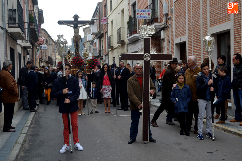 Las imágenes del Santo Cristo del Humilladero y el Cristo de San Luis partieron de la ermita de este último para, tras un breve recorrido, despedirse con un sentido saludo en la plaza de la Constitución, lugar que separaron sus caminos, dirigiéndose el de San Luis a la parroquia y el del Humilladero, portado a hombros por sus costaleros, a su Ermita.
