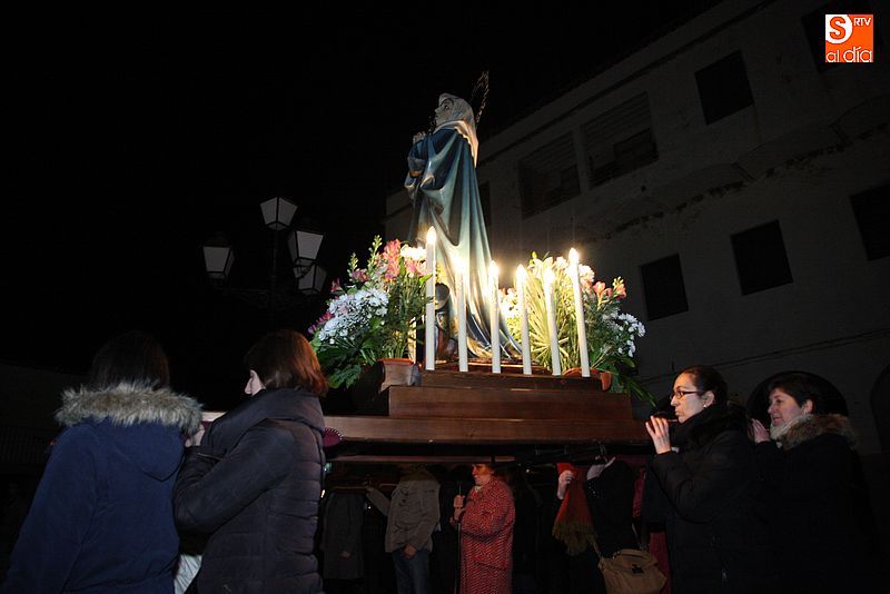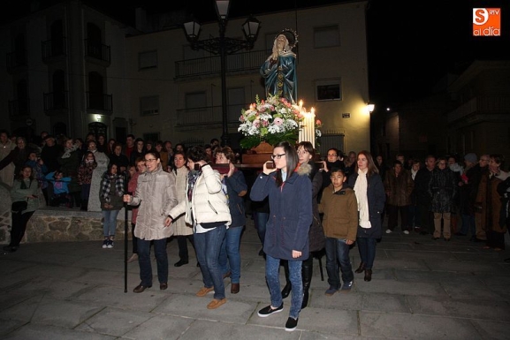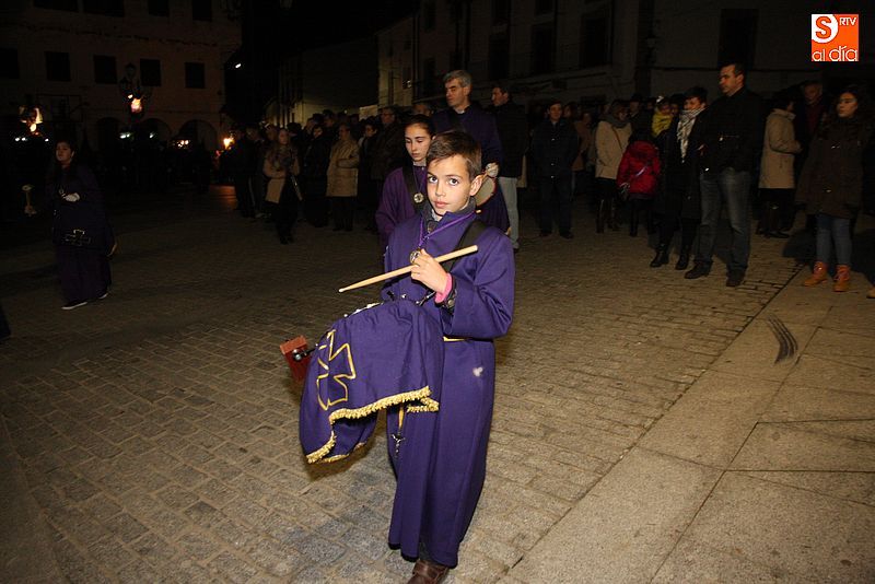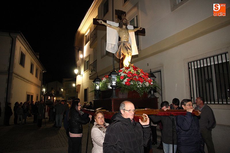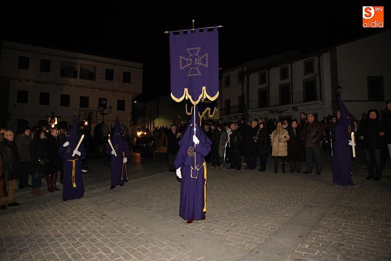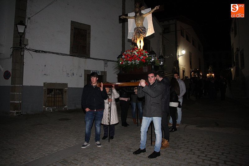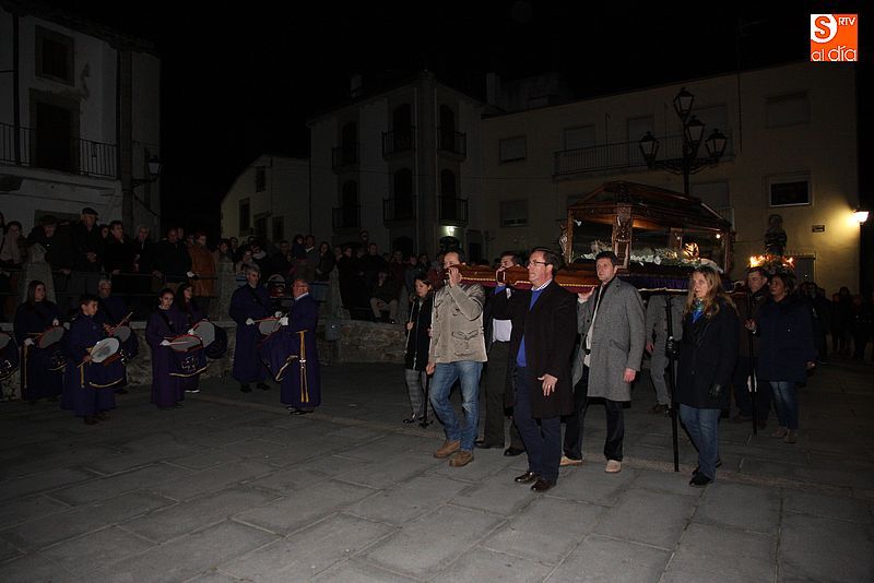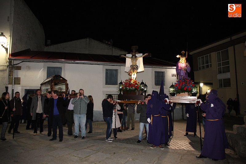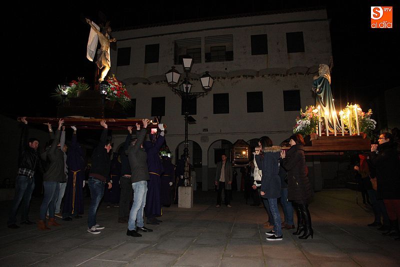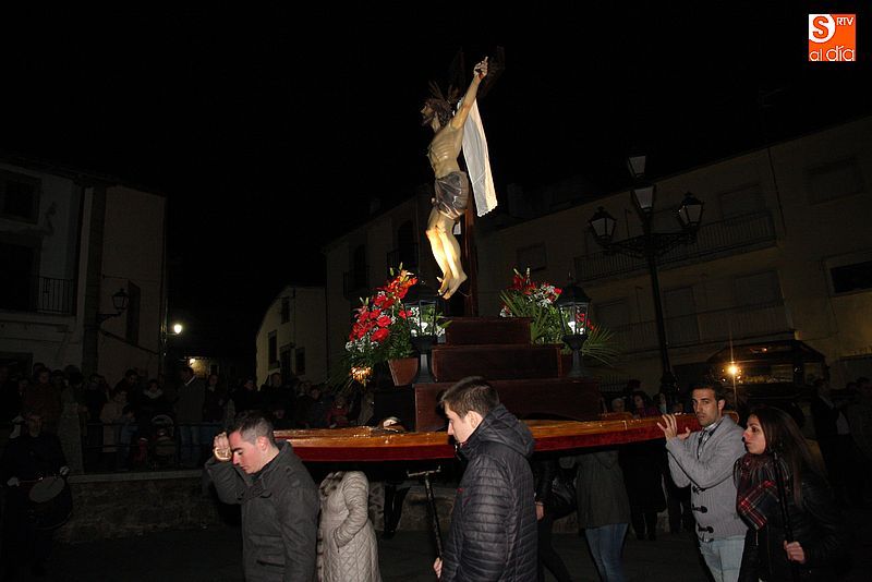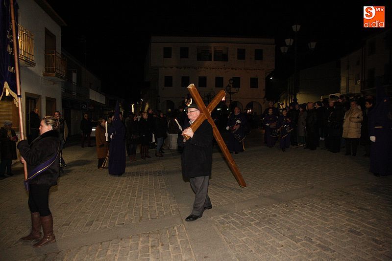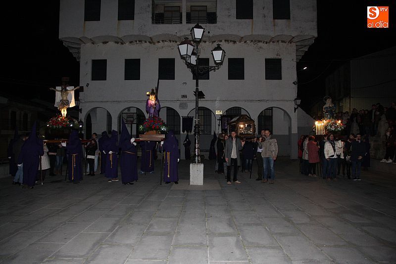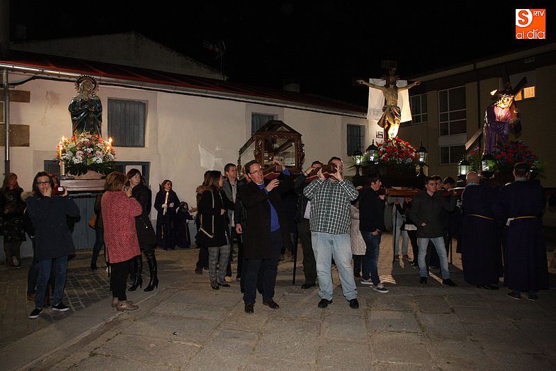 El Viernes Santo ledradense llegó a su final con la última de las celebraciones litúrgicas de la jornada, la Procesión del Santo Entierro. Tras el Vía Crucis a mediodía y la celebración de los Santos Oficios, llegó el turno de la procesión nocturna más multitudinaria del calendario local. Las imágenes del Cristo Crucificado, La Dolorosa, El Nazareno y el Santo Sepulcro formaron parte de la comitiva, tanto a hombros de los hermanos de la cofradía de Jesús el Nazareno, como de fieles vecinos de la localidad. Cuando los pasos llegaron a la plaza Mayor, se hizo un corto alto en el camino. Las integrantes del coro parroquial le cantaron un himno a la imagen de La Dolorosa. Acto seguido, dicha imagen fue llevada al encuentro de la imagen de Cristo Crucificado, que fue levantado en vilo por sus portadores. La segunda parada antes de regresar al templo fue a la altura del Ayuntamiento, desde el cual se pudo oír una saeta.
