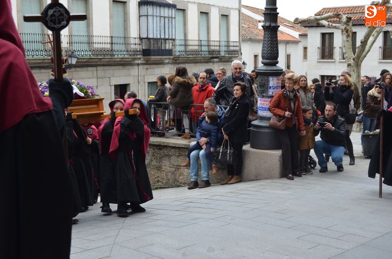 La procesión de los niños ha continuado hasta la plaza de la Piedad, mientras en el interior de la iglesia de El Salvador daba comienzo un viacrucis de la Seráfica Hermandad, ante una cruz tapada en señal de duelo, y con los fieles visitando el monumento de Nuestra Madre Dolorosa y El Divino Salvador.