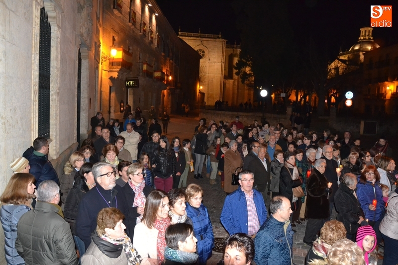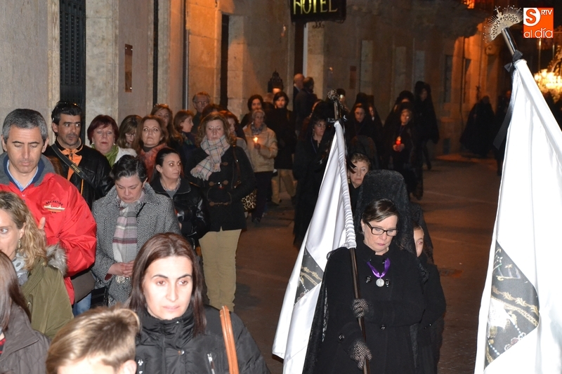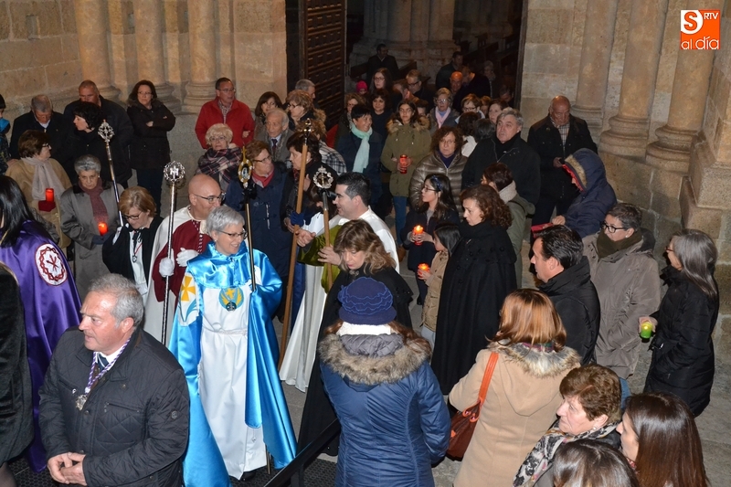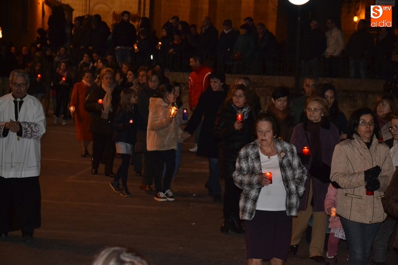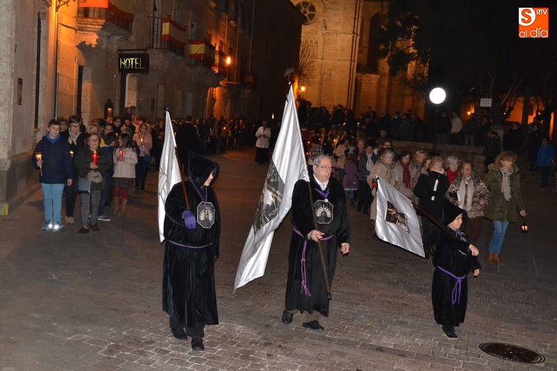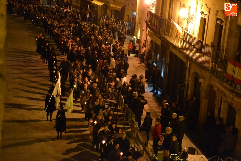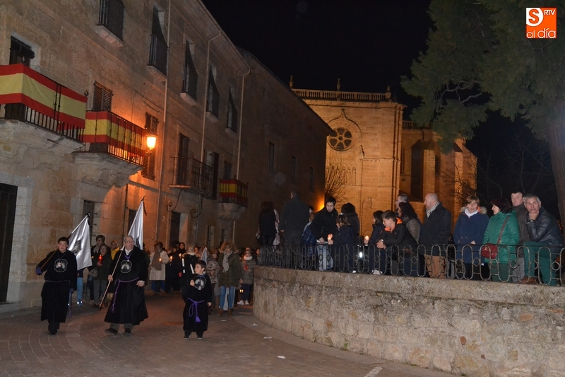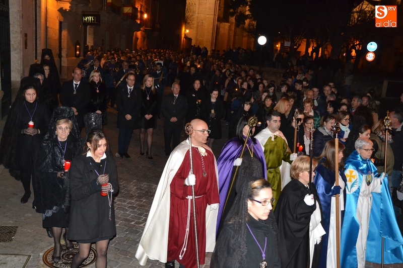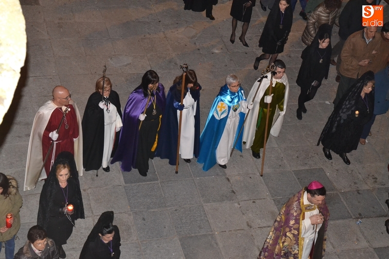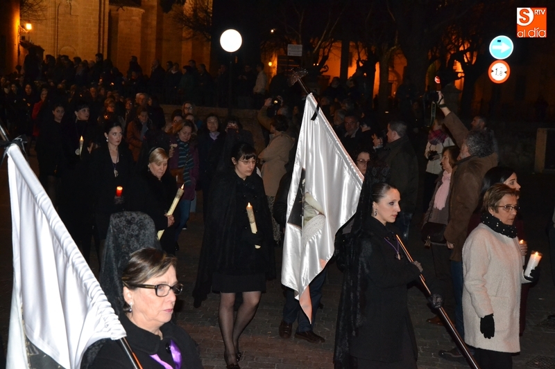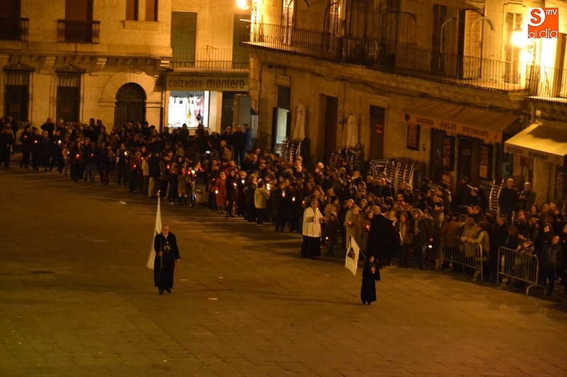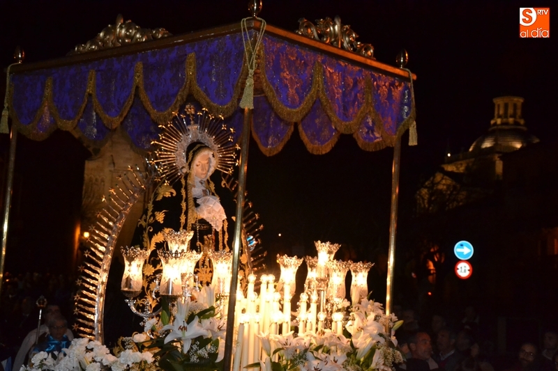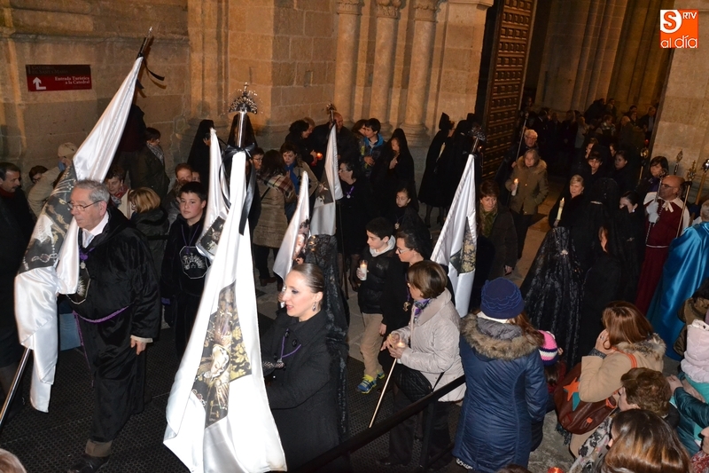 Como es tradición siempre que hace una noche de Viernes Santo agradable, miles de personas salieron a la calle para acompañar a la Virgen en su procesionar por el centro histórico mirobrigense. Eso sí, la gran mayoría de esas personas esperó a la Virgen a las puertas de la Catedral, en vez de asistir al rezo del Rosario y al sermón a cargo del capellán de la Cofradía, Ángel Olivera (como actual presidente del Cabildo Catedralicio), que tuvieron lugar con anterioridad en el interior de la Seo.