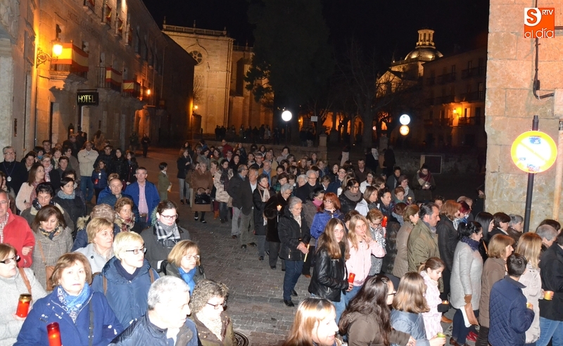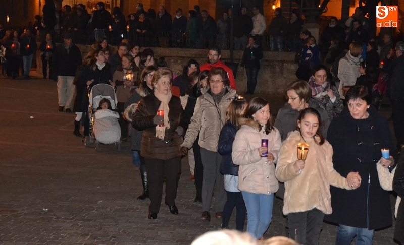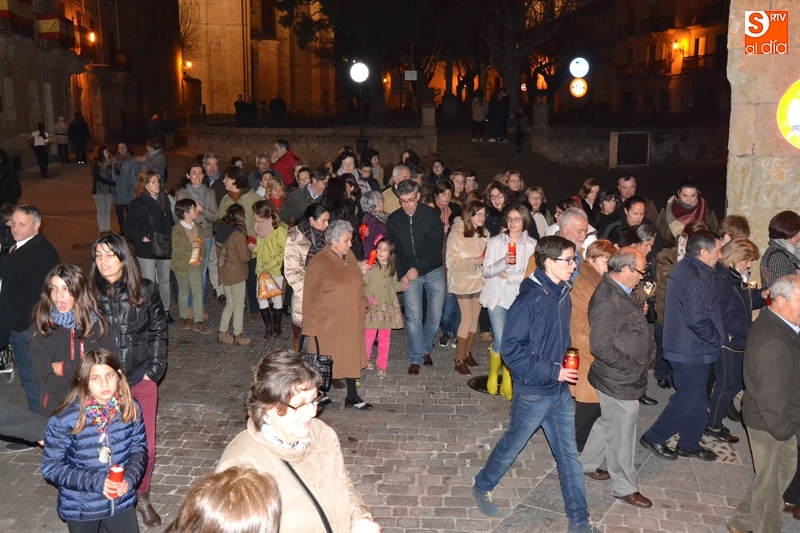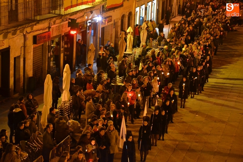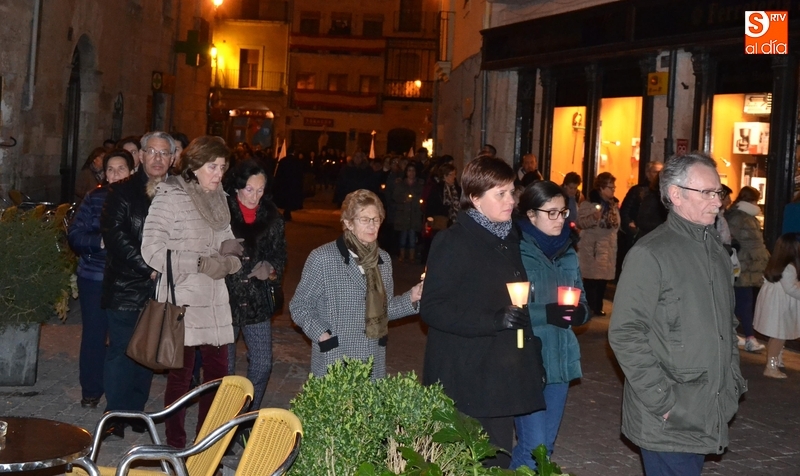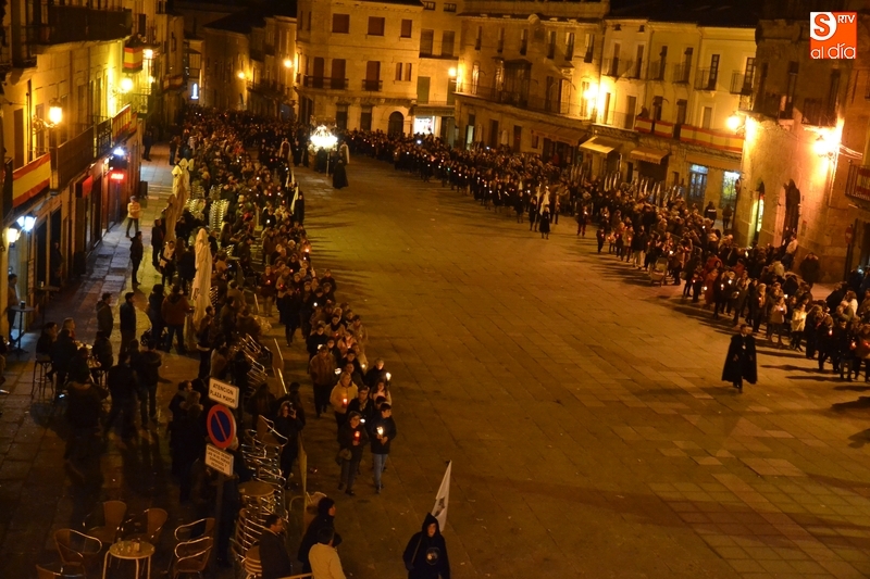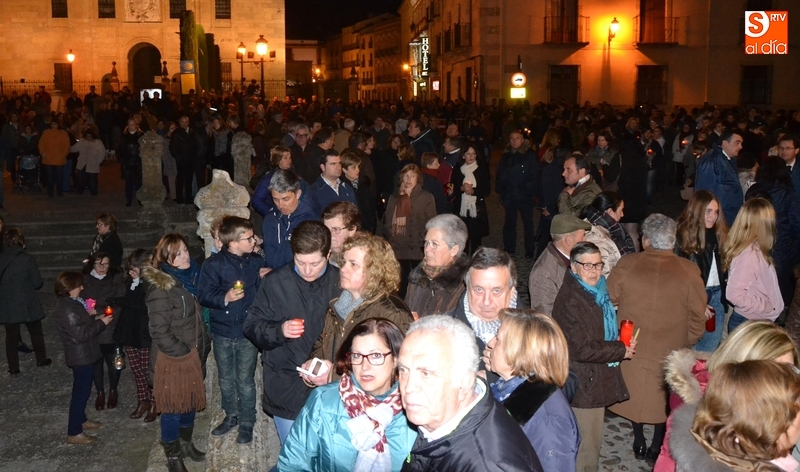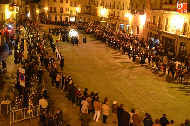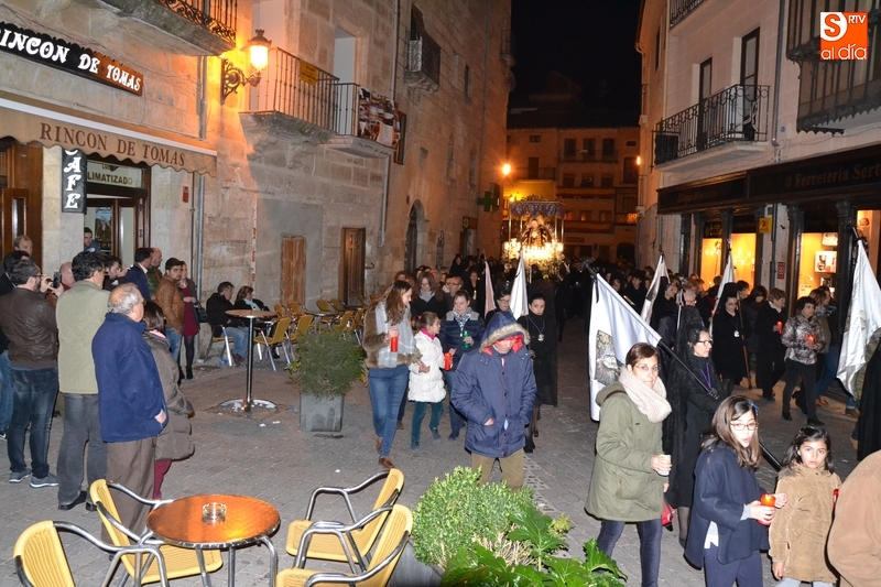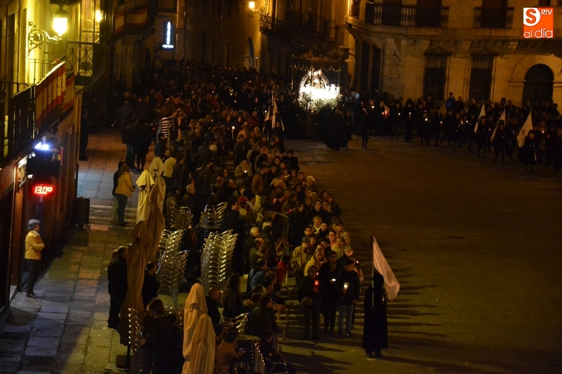 Tras salir hacia la Plazuela de San Salvador, la procesión continuó por Díez Taravilla y la Colada para alcanzar la Plaza Mayor, donde Ángel Olivera hizo una nueva reflexión, en la que recordó a las víctimas de los atentados del pasado martes en Bruselas y todas aquellas que está dejando Estado Islámico. La procesión siguió por la Rúa del Sol, calle Gigantes, Campo del Pozo, Cristóbal de Castillejo, calle San Juan, Colegios, Velayos y Sánchez Arjona para alcanzar de nuevo la Plaza.