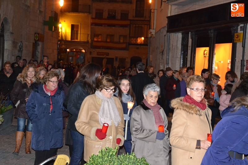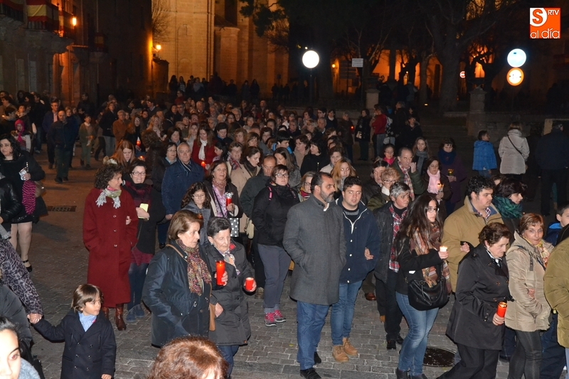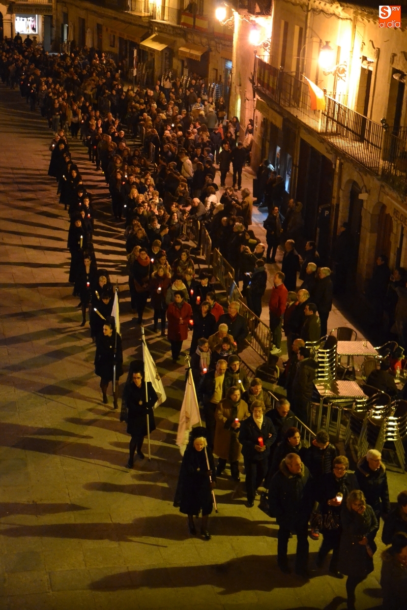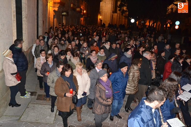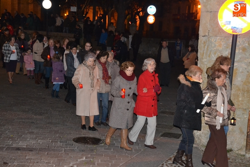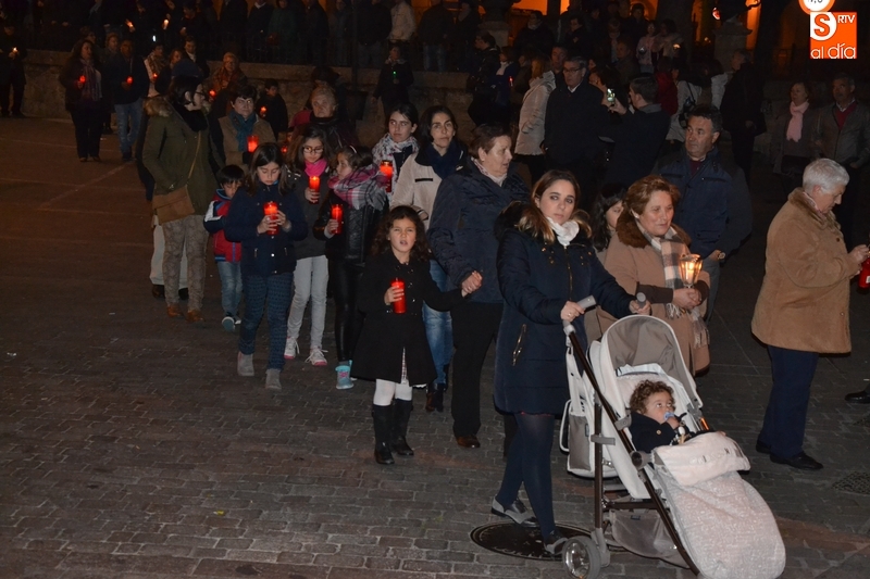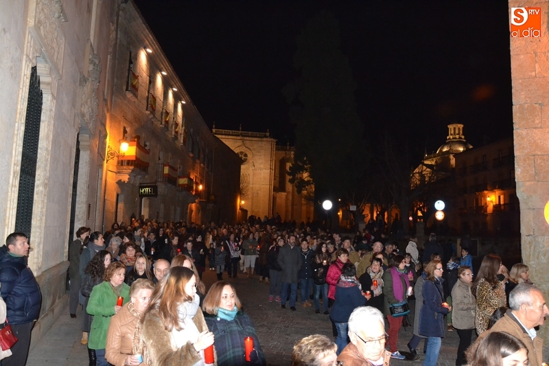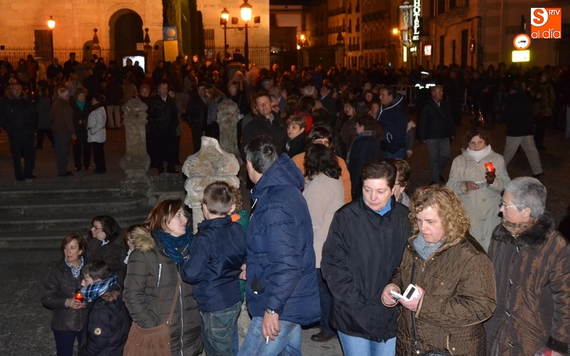 Tras salir hacia la Plazuela de San Salvador, la procesión continuó por Díez Taravilla y la Colada para alcanzar la Plaza Mayor, donde Ángel Olivera hizo una nueva reflexión, en la que recordó a las víctimas de los atentados del pasado martes en Bruselas y todas aquellas que está dejando Estado Islámico. La procesión siguió por la Rúa del Sol, calle Gigantes, Campo del Pozo, Cristóbal de Castillejo, calle San Juan, Colegios, Velayos y Sánchez Arjona para alcanzar de nuevo la Plaza.