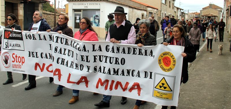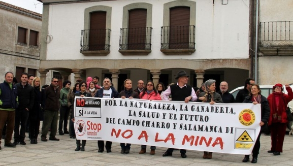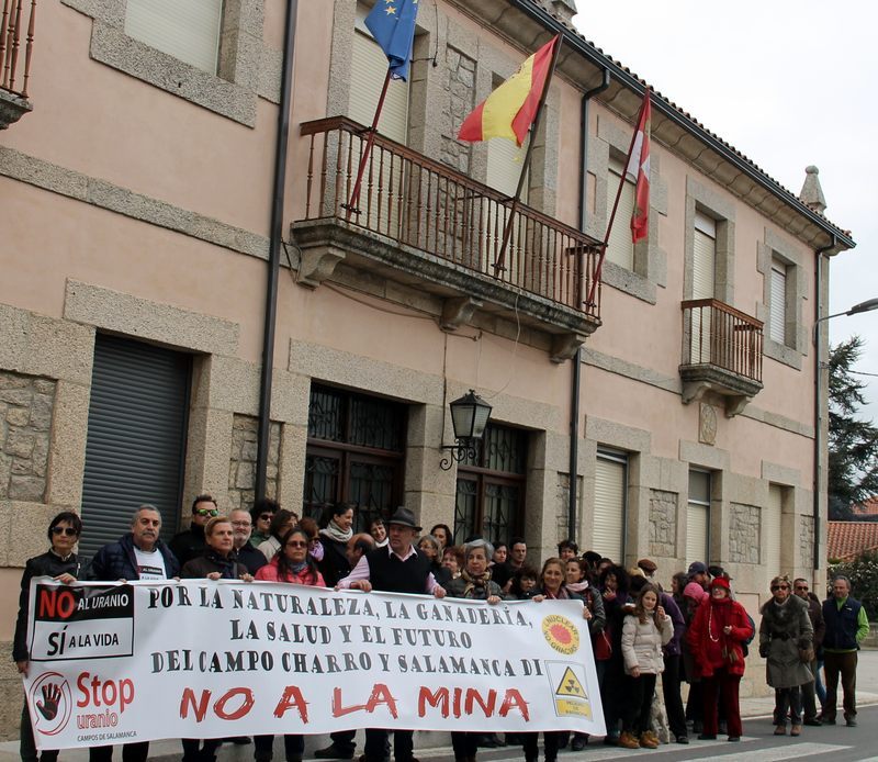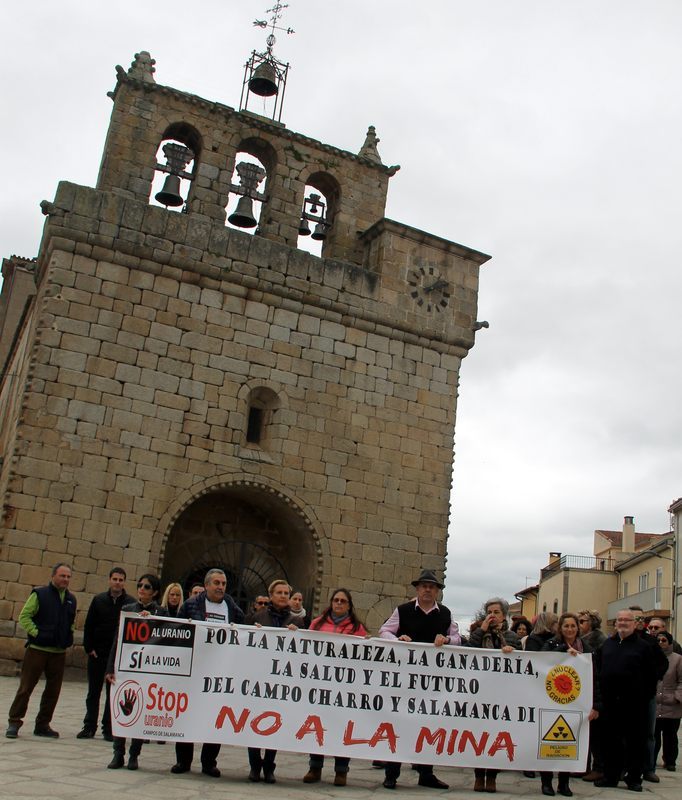 Socios y simpatizantes de la plataforma Stop Uranio se dieron cita este sábado en Villavieja de Yeltes para protagonizar un bonito acto simbólico de protesta contra la construcción de una mina de uranio a cielo abierto en los términos municipales de Retortillo y Villavieja de Yeltes (Santidad).