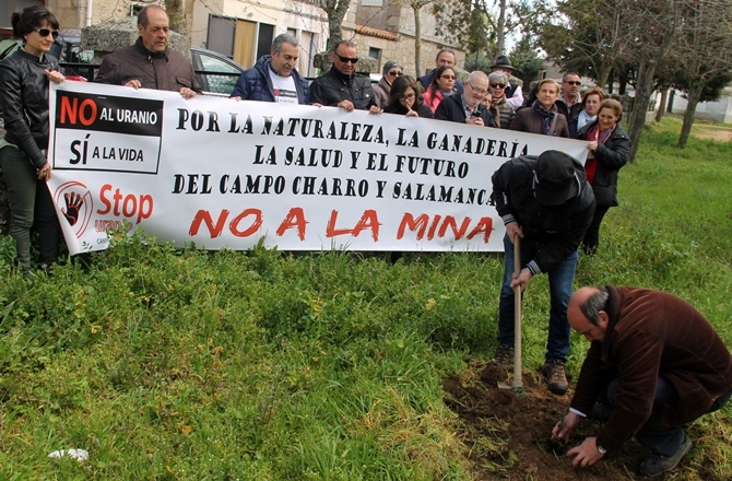 La Plataforma apunta que quieren que estas encinas que se vayan plantando sean "el símbolo de una victoria del sentido común contra la barbarie de este proyecto" que incluiría una mina de uranio, planta de tratamiento de uranio y almacenamiento de residuos radiactivos en "esta envidiable comarca del Campo Charro".