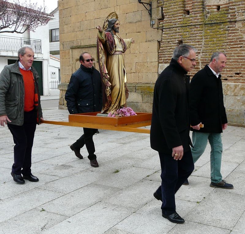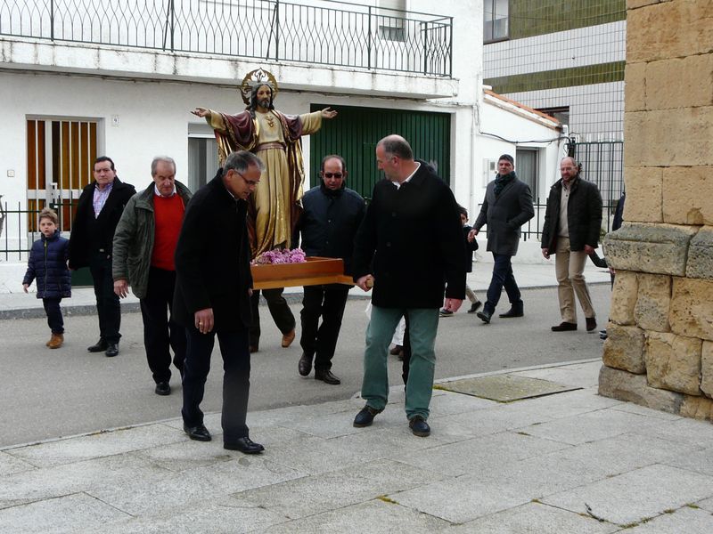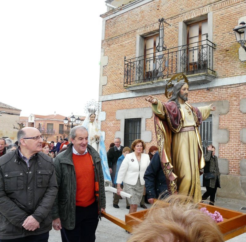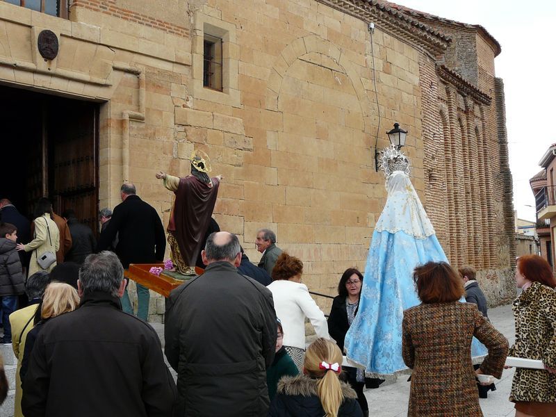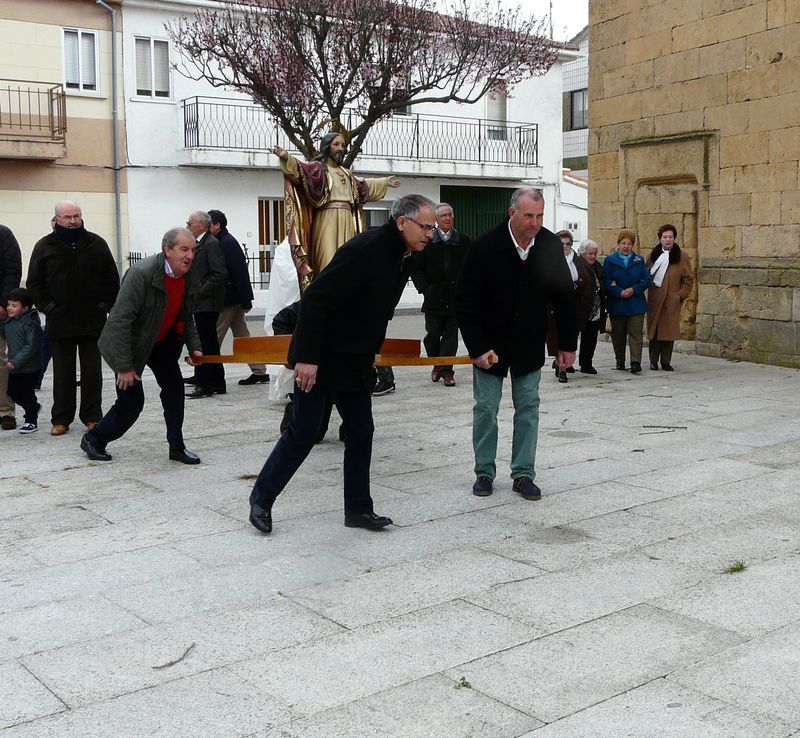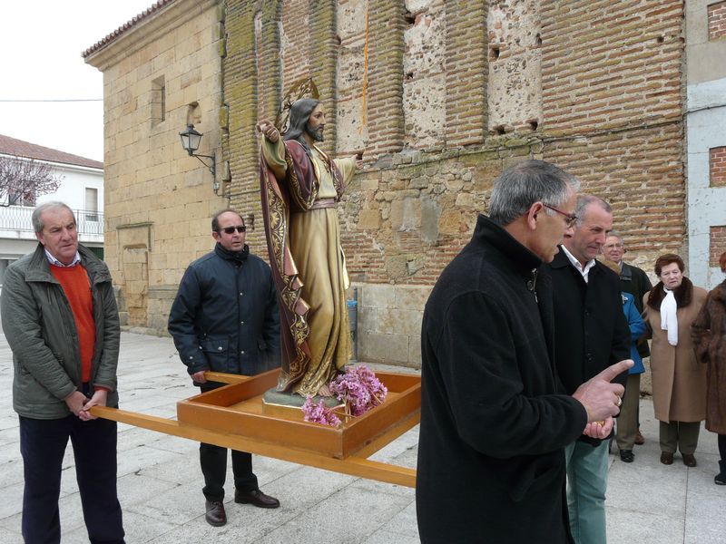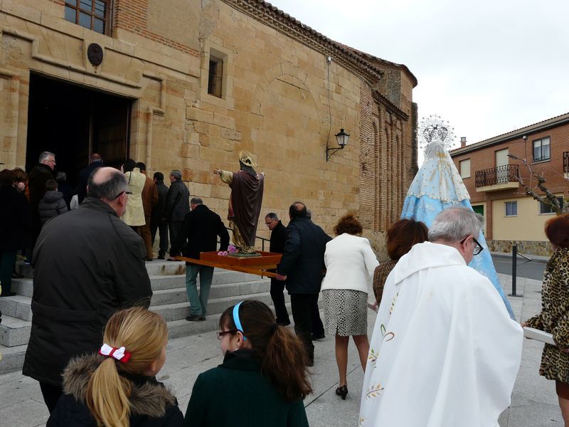 Los vecinos de Villoria han cerrado las actividades religiosas de la Semana Santa participando en la esperada procesión del Encuentro de este Domingo de Resurrección, un acto que pequeños y mayores han vuelto a vivir con gran emoción.