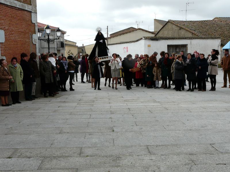 VILLORIA | Las mujeres portaron la imagen de la Virgen que inició el recorrido por los alrededores de la iglesia vestida de luto riguroso