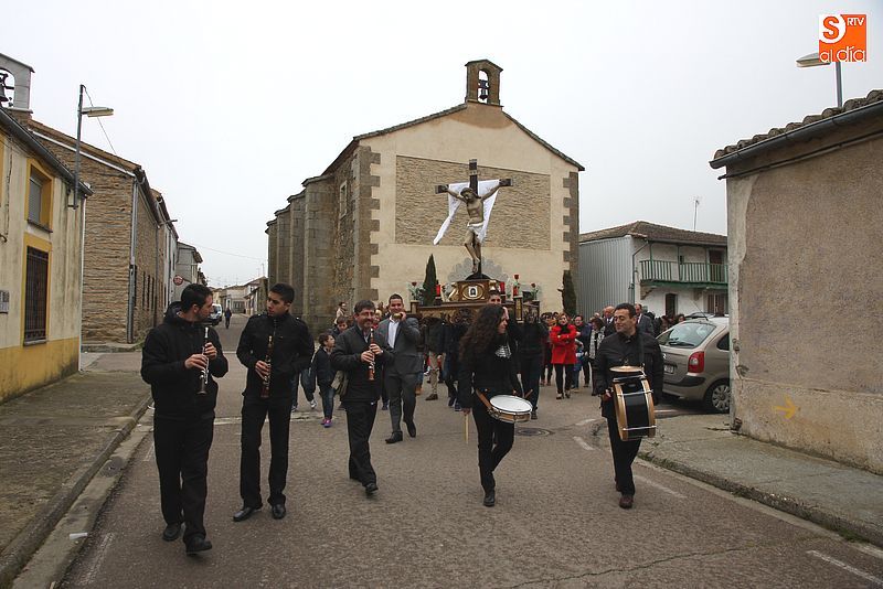 Fuenterroble de Salvatierra da la bienvenida a la Pascua con su tradicional celebración en torno al Cristo del Socorro y la famosa subasta de los huevos del Cristo. La programación de actos comenzó a las once de de la mañana con el pasacalles musical a cargo del grupo de dulzainas Adobe. A mediodía se ofició santa misa en la ermita ubicada en el centro de la localidad en honor al Santísimo Cristo del Socorro y a su término se procesionó con la imagen del Cristo por las calles de la localidad. El recorrido fue corto, debido una ligera lluvia presente, lo que no impidió que más de un centenar de personas acompañara la comitiva.