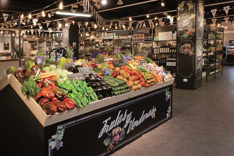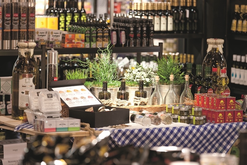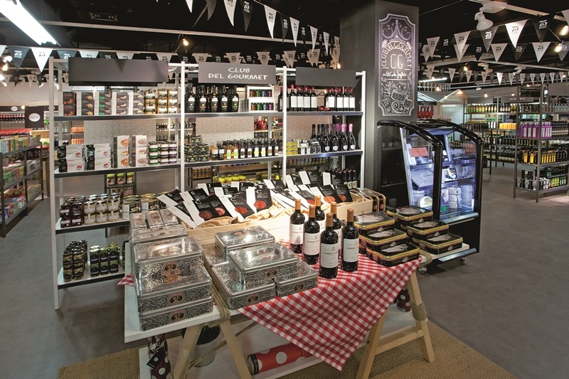Los 15 universos que los centros comerciales de El Corte Inglés recrean son los de charcutería, aceites, conservas, legumbres y arroces, refrigerados, bodega, cervezas, refrescos, dulces, congelados, Club del Gourmet, aperitivos y aceitunas, cafés e infusiones, chocolates y droguería y perfumería.