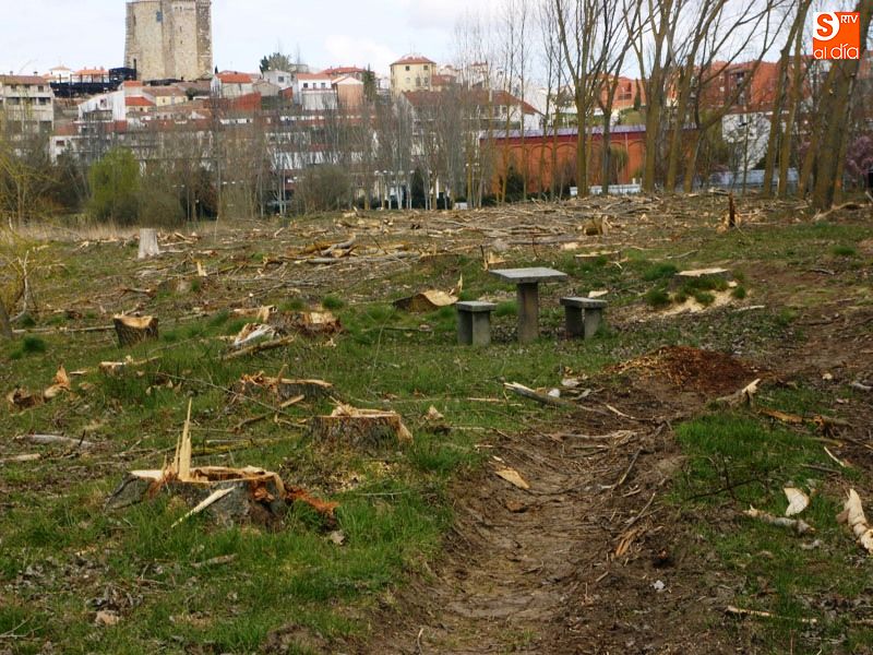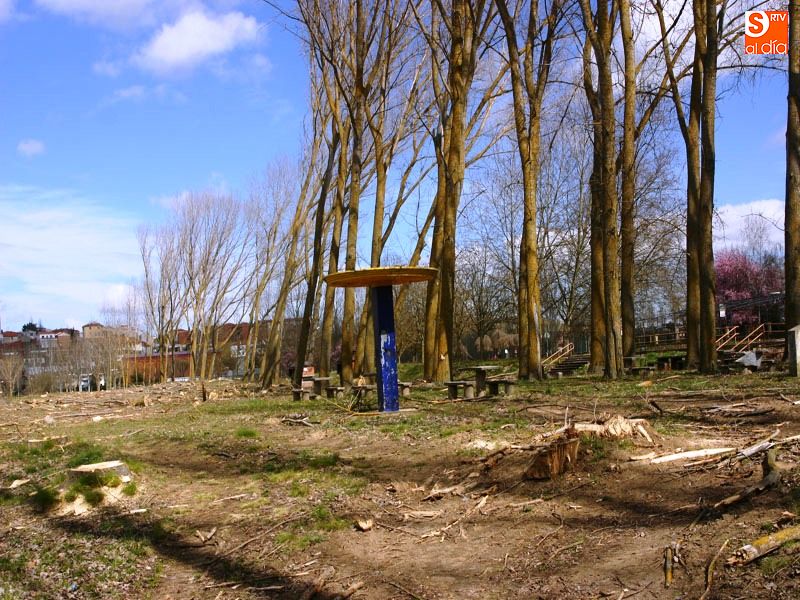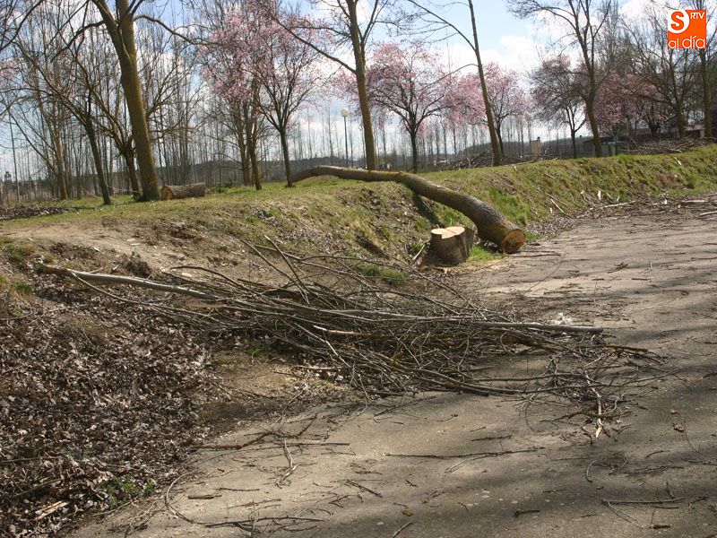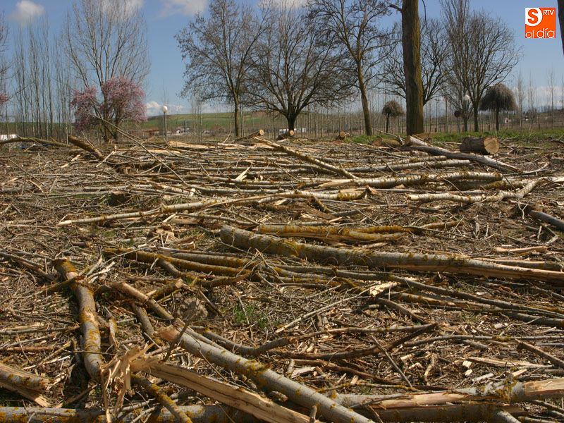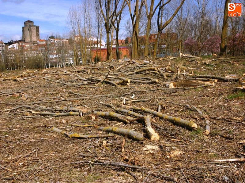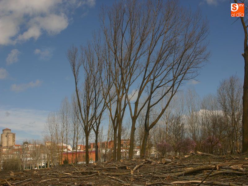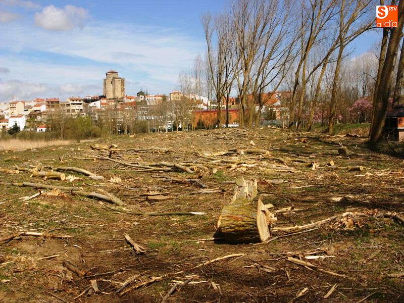Tal y como ya informamos el pasado 9 de marzo, el Ayuntamiento de Alba de Tormes se vio obligado a tomar la difícil decisión de eliminar prácticamente la totalidad de los chopos presentes en la zona de las antiguas playas. Lo que comenzó siendo una corta selectiva de árboles que amenazaban con caerse debido a su inclinación o simplemente por estar afectados por hongos, se ha convertido en una tala masiva debido al mal estado de la base de los chopos que ponía en riesgo su caída, lo que sería extremadamente peligroso ya que es una zona de ocio muy transitada.