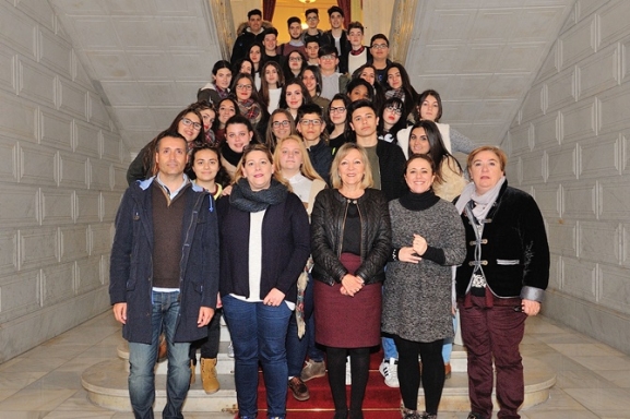 La concejala de Familia e Igualdad de Oportunidades, Cristina Klimowitz, ha recibido esta mañana, en el Ayuntamiento de Salamanca, a un grupo de profesores y alumnos del colegio de Nuestra Señora de Guadalupe, acompañado de la concejala de Igualdad y Cultura de Mérida.