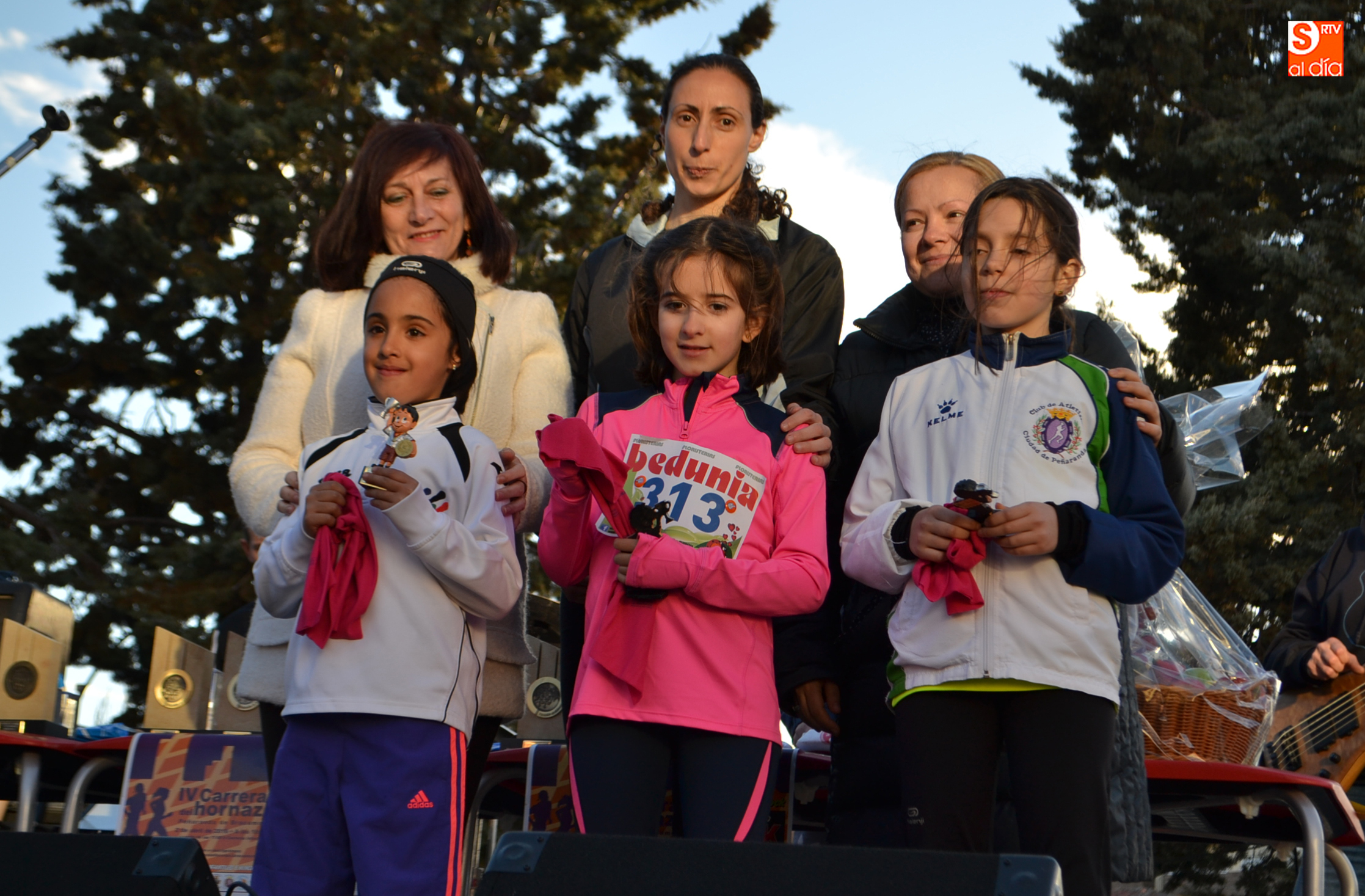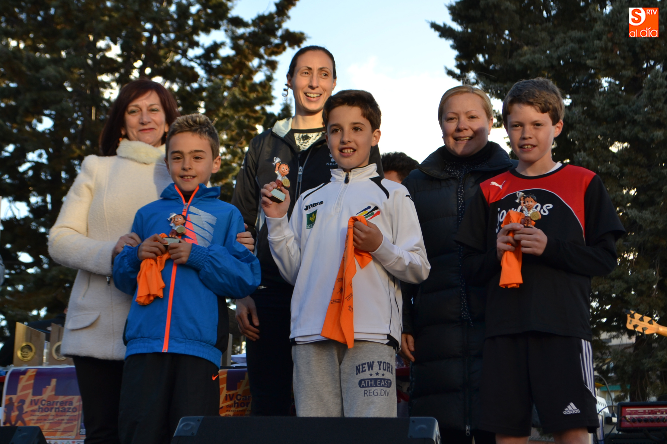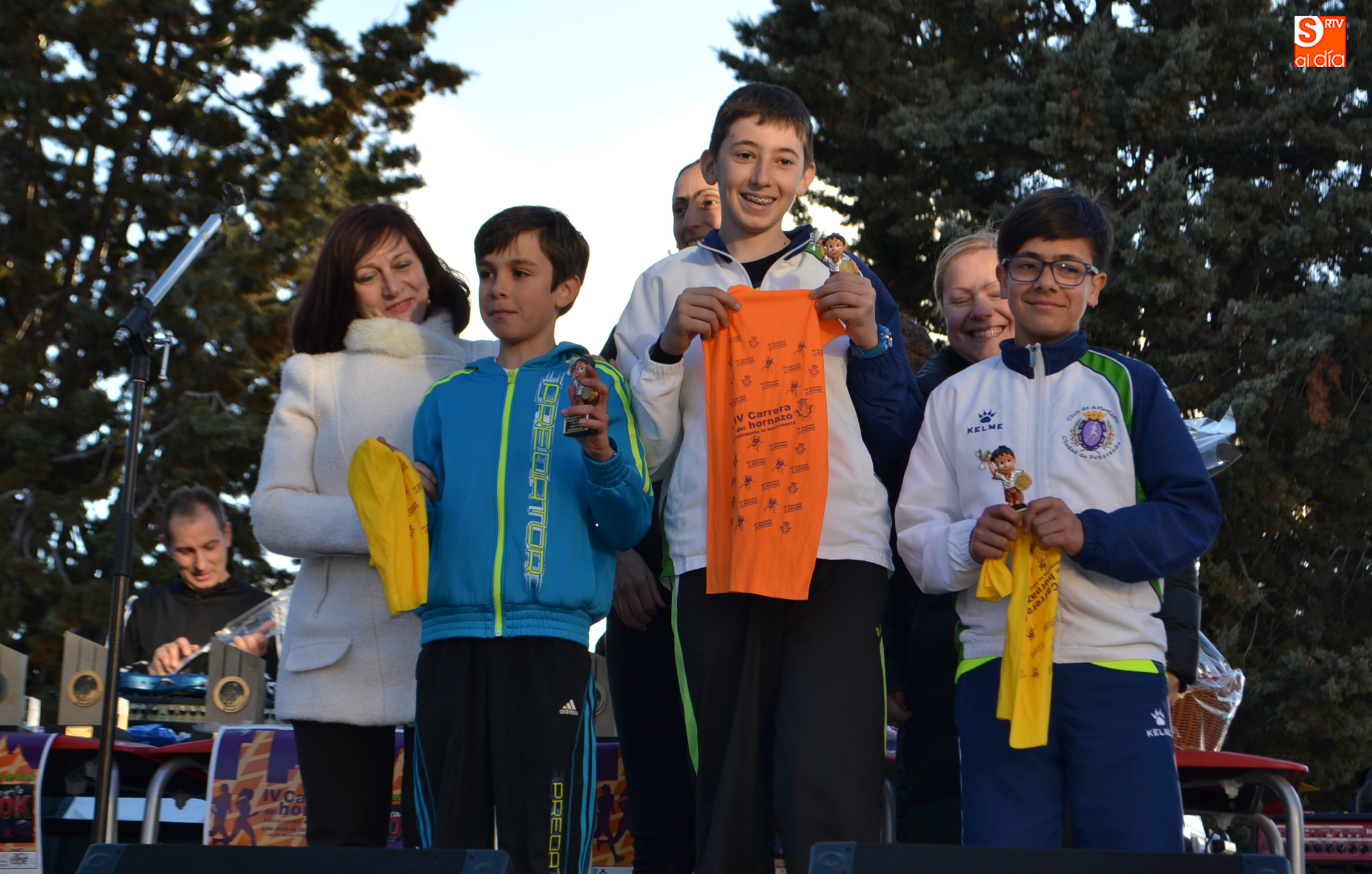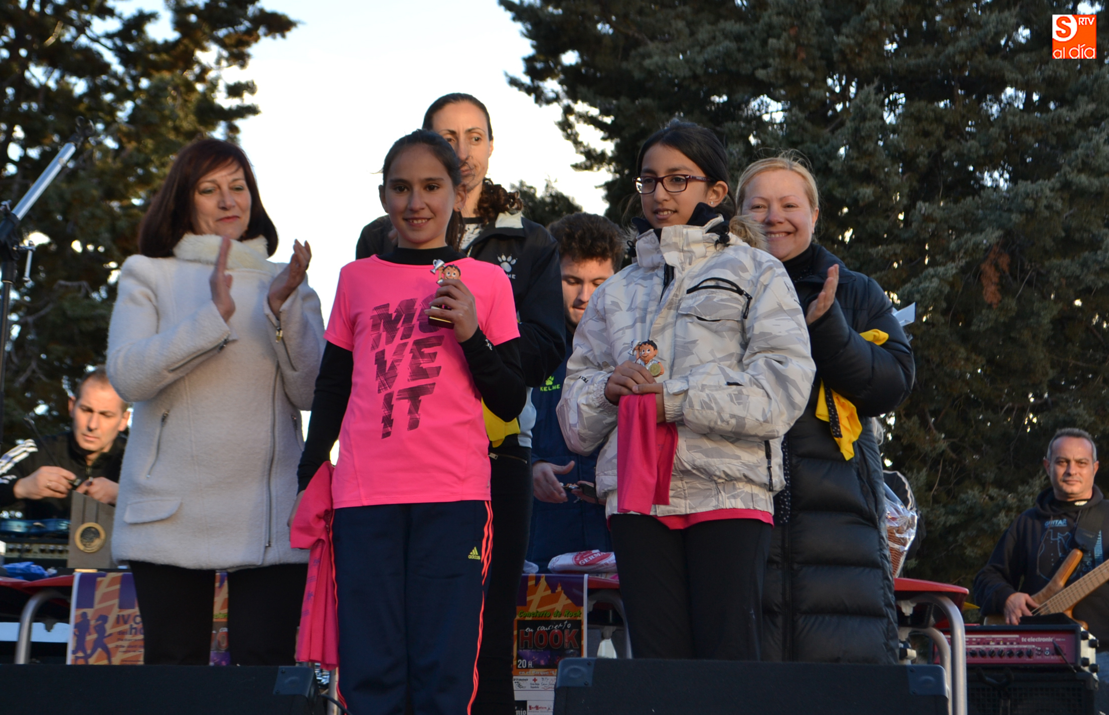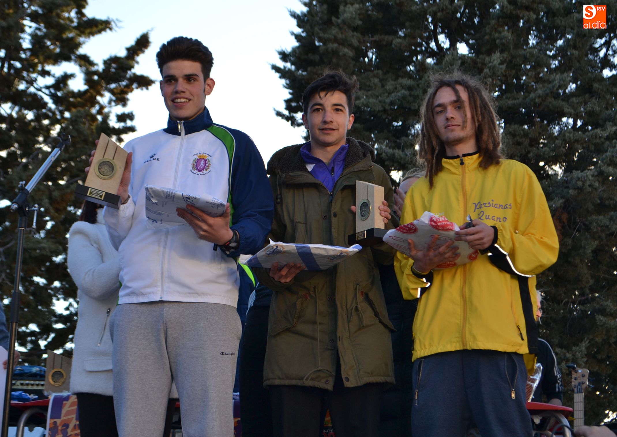 Tras finalizar las diferentes carreras y realizar las correspondientes clasificaciones, se entregaron premios a los tres primeros clasificados en todas las categorías establecidas por la organización en el Parque La Huerta, una de las grandes novedades de esta edición, en el que además se instalaron hinchables para los más pequeños al igual que en el pabellon. Los participantes en la carrera prebenjamín, no competitiva, recibieron el reconocimiento inmediato a su esfuerzo en forma de medalla. El resto de las categorías también recibieron sus premios: en metálico los tres primeros de la general, tanto en modalidad masculina como femenina, trofeos y hornazos de la zona.