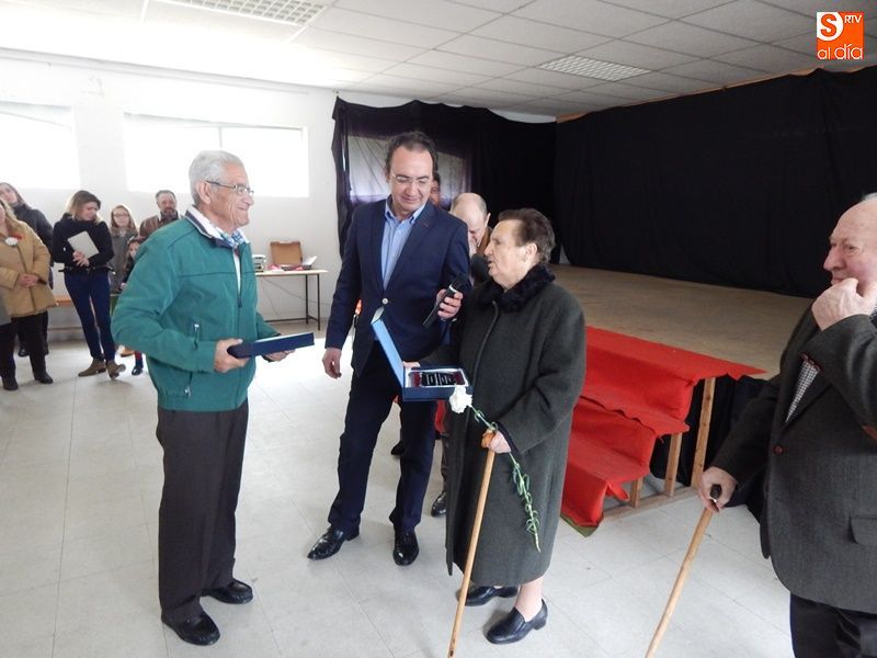 Los mayores han sido los protagonistas de la jornada festiva en Vega de Tirados, en un tradicional homenaje que incluye la entrega de placas a los dos vecinos de más edad, y que este año han recogido Auxiliadora Santos Fernández y Tomás Alonso Sánchez en un acto en el que han estado acompañados de familiares y vecinos.