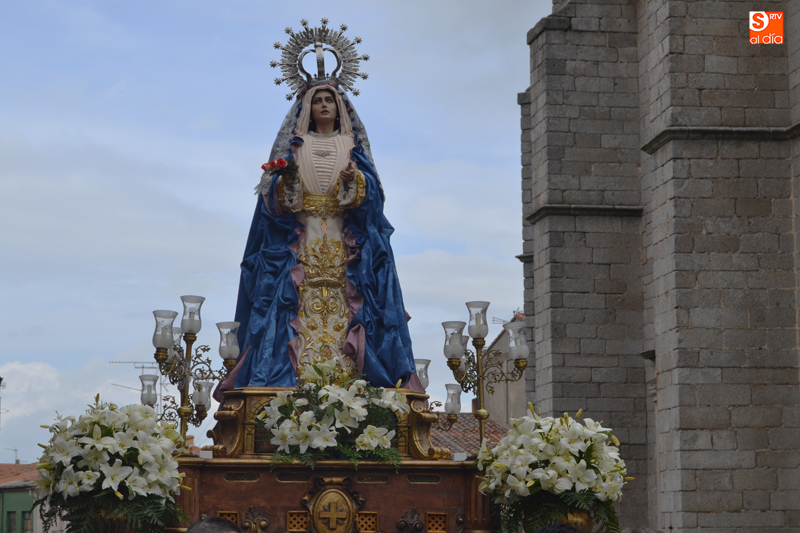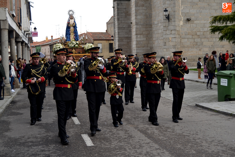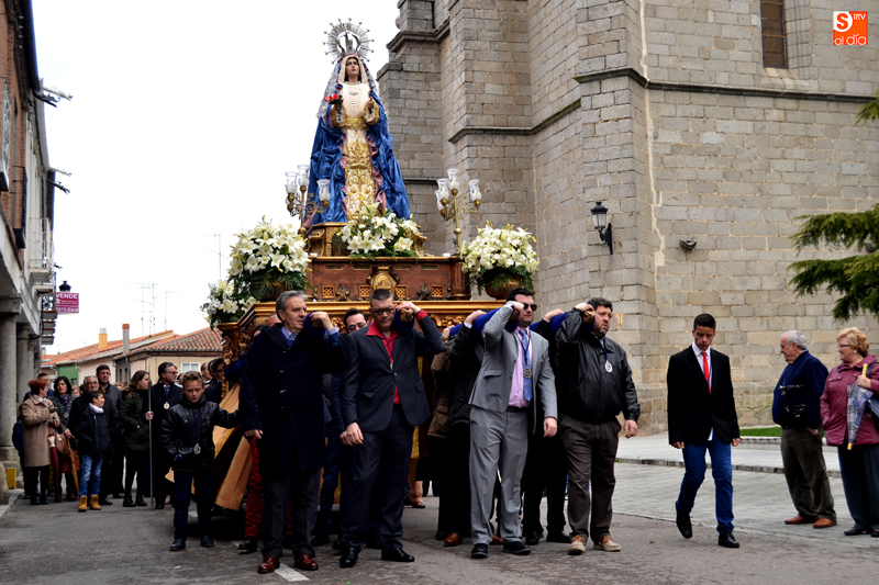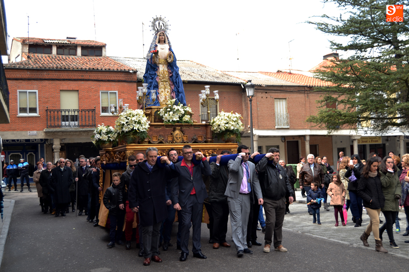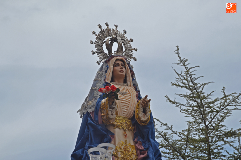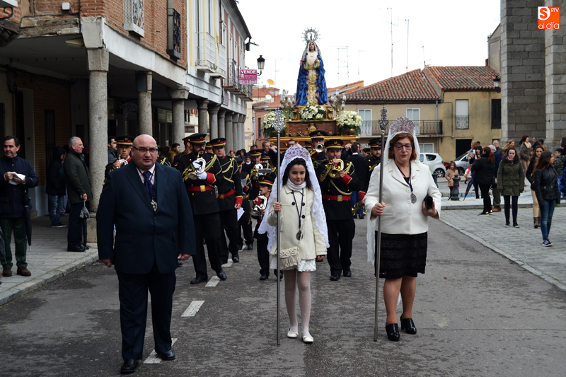 Desafiando al intenso frio y la amenaza de lluvia, Nuestra Señora de la Misericordia volvía a procesionar durante la mañana de este domingo con motivo de la celebración de su fiesta anual. El acontecimiento era nuevamente seguido por numerosos fieles y se iniciaba en la iglesia parroquial San Miguel Arcángel, donde tuvo lugar una solemne eucaristía tras la que la imagen salía del templo portada a hombros para iniciar un recorrido que la llevaría por las plazas Agustín Martínez Soler, Constitución y España.