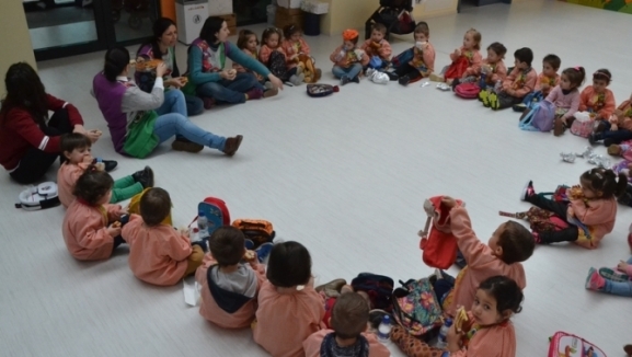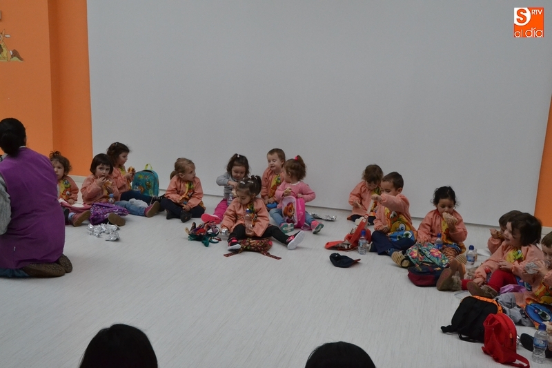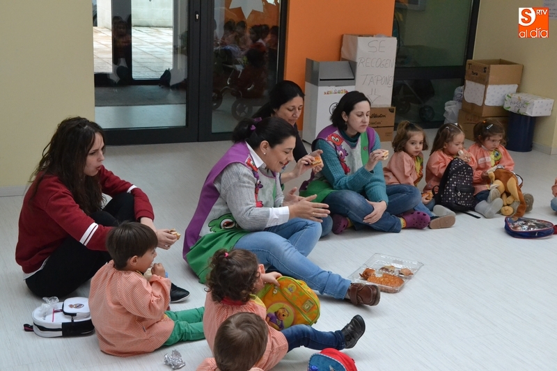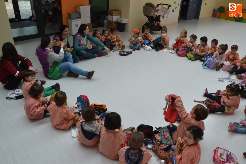 A cambio, formaron a media mañana un corro en el hall de la Escuela, sacando las mochilas que habían traído de casa con algún pequeño -o un poquito grande- bocata, o incluso con unos hornazos en miniatura. Además, las responsables de la Escuela también aportaron un hornazo, y unas galletas en forma de pez, por aquello del nombre de la celebración.