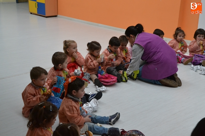 Los alumnos más mayores de la Escuela Infantil José Manuel Hidalgo de Ciudad Rodrigo han sido posiblemente de los primeros salmantinos en degustar el hornazo en la tradicional jornada del Lunes de Aguas.