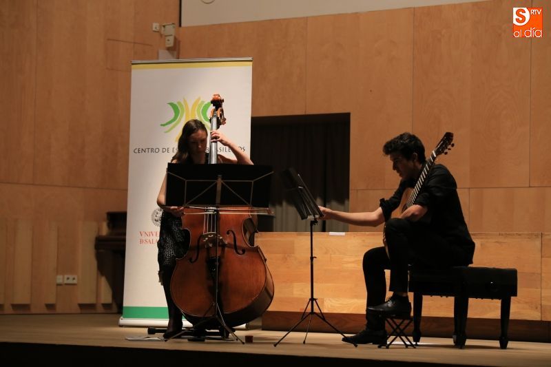 Los jóvenes artistas Paula Escudero y Eduardo Jiménez, ofrecieron un recital a dúo de contrabajo y guitarra, dentro del ciclo Musicalia, organizado por Centro de Estudios Brasileños de