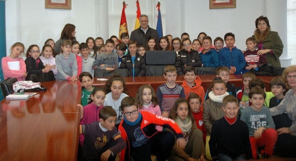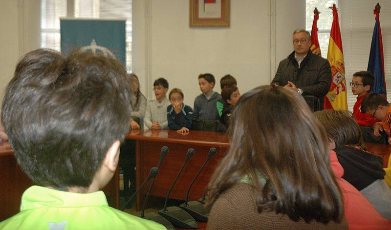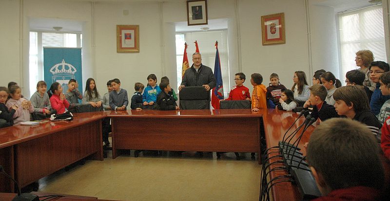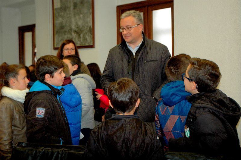 El alcalde de Guijuelo, Francisco Julián Ramos Manzano, recibía ayer en el Salón de Plenos a medio centenar de niños de 4º de Primaria del Centro de Educación Infantil y Primaria Filiberto Villalobos.