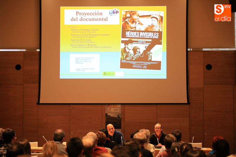 Alfonso Domingo, codirector del documental 'Héroes invisibles. Afroamericanos en la guerra de España', ha presentado este trabajo en Salamanca, en el Centro Documental de la Memoria Histórica, donde tras la proyección tenía lugar un debate.