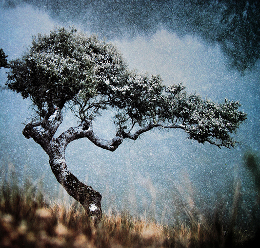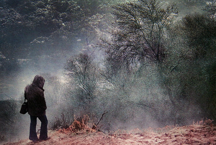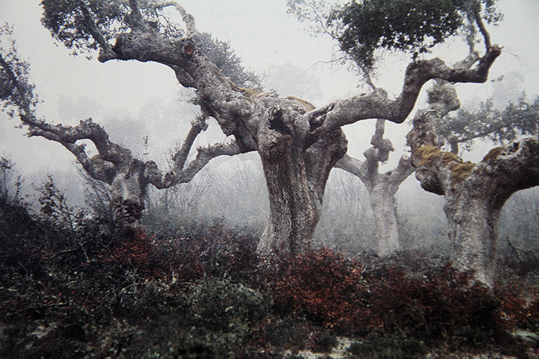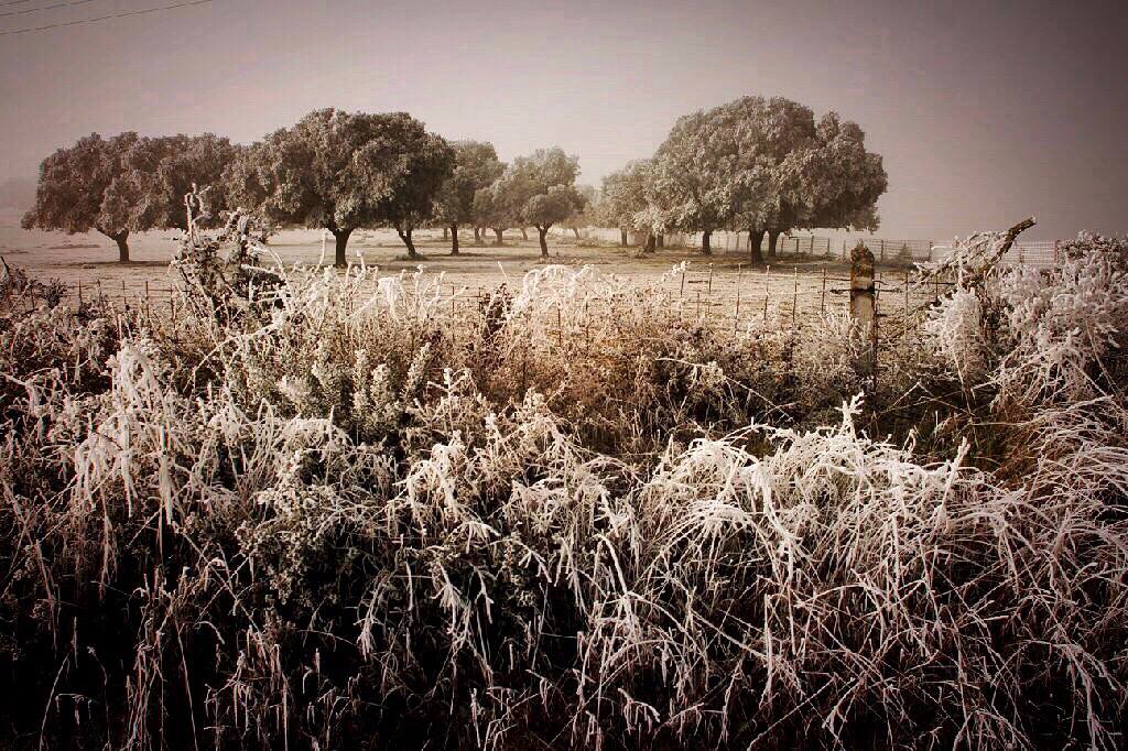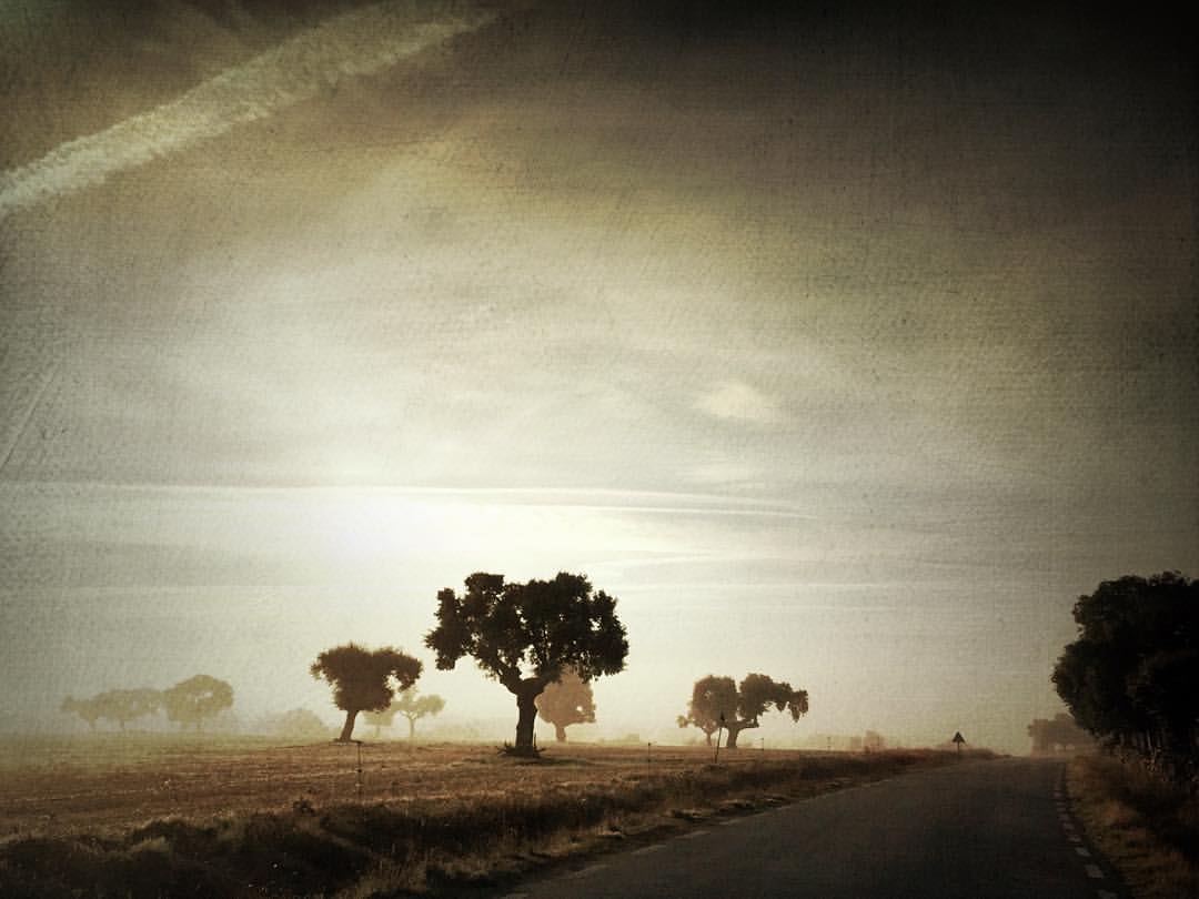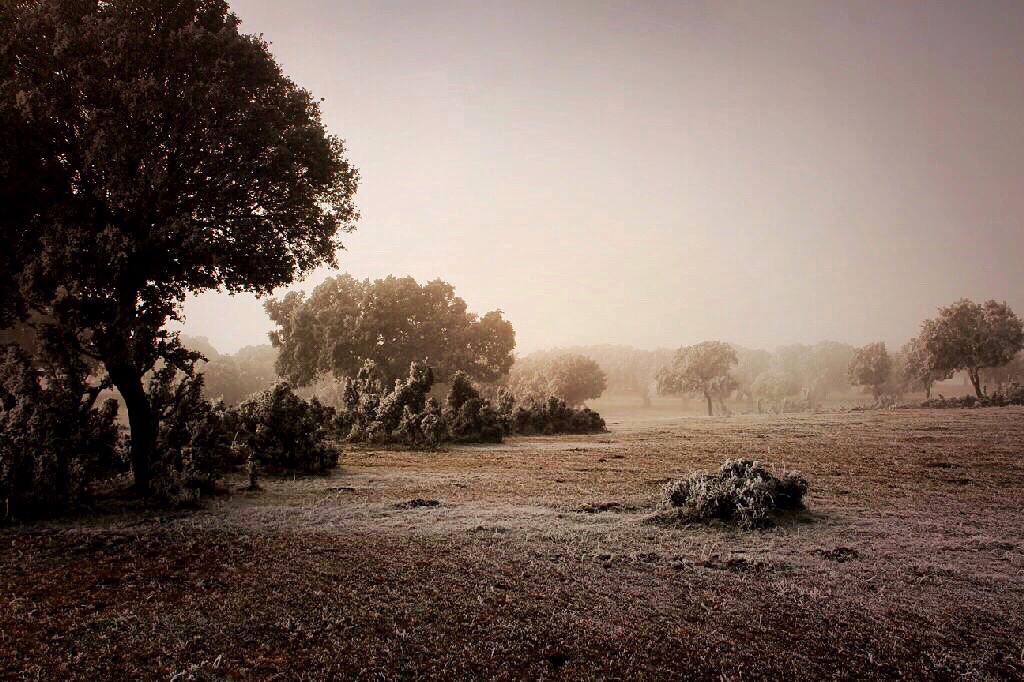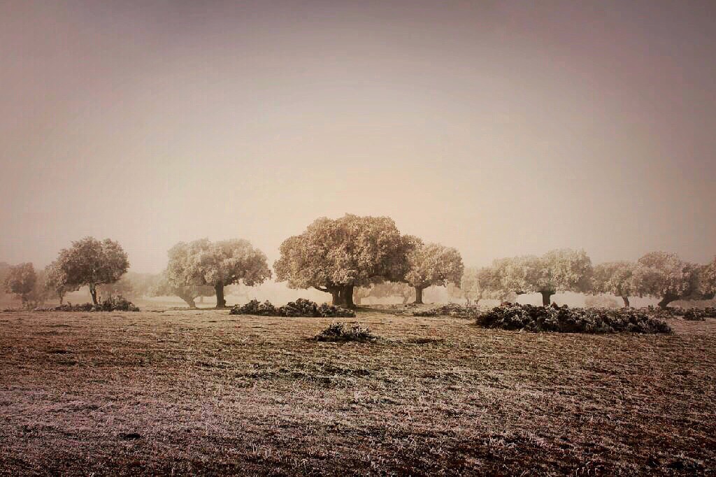 Me puse a ello con un afán casi obsesivo, las encinas se disolvían en la niebla a medida que se distanciaban de mi posición, haciendo que pareciera aun mayor el espacio entre ellas. Aquello producía en mi retina una sensación de soledad que hacía que me aislara de todo entorno industrial y que solo viera lo evi