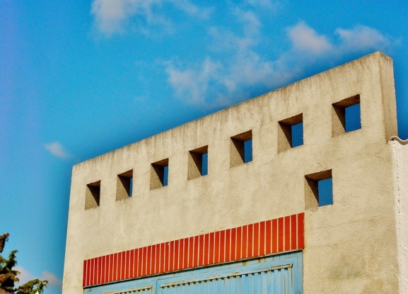 La foto que hoy traigo está tomada en un barrio de mi ciudad: La Vega. Es la fachada de un garaje sin más pretensiones que la de albergar vehículos. Y esto es lo debía pensar un vecino que me vio haciéndola. A este hombre lo conocía: habíamos trabajado en la misma empresa, y entretenía él su reciente prejubilación con paseos matutinos, para que el cuerpo se vaya haciendo al exceso de ociosidad.