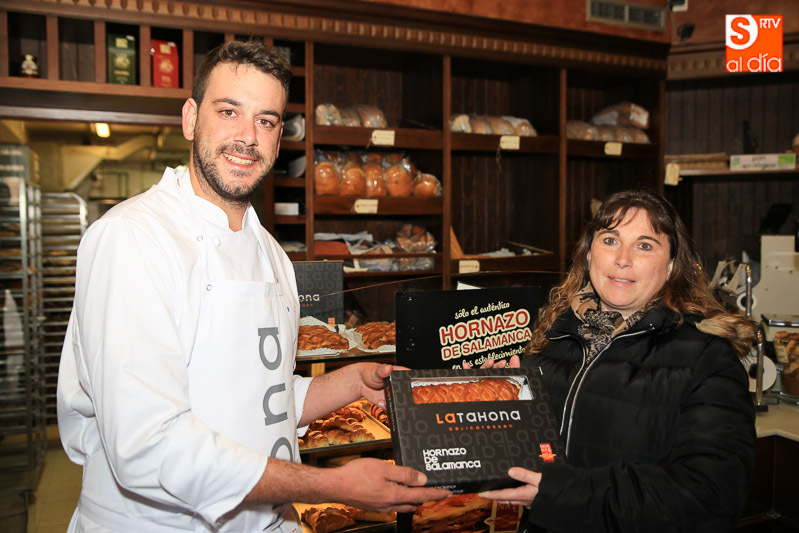 Los ganadores de cuatro de estos ocho hornazos acudieron ayer a la 'Tahona Delicatessen' y Pastelerías 'La Madrileña' para recoger tan suculento y apreciado premio. Allí fueron recibidos por Raquel Soria y los responsables de los dos obradores que elaboran los hornazos de la marca de garantía 'Hornazo de Salamanca'