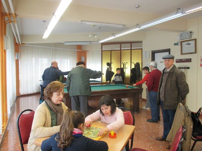 Los socios se han convertido en maestros ocasionales dándoles la oportunidad de conocer juegos tradicionales, ya cada vez menos habituales entre los entretenimientos infantiles, como la peonza, el billar, la rana, la comba o las chapas. Los chicos, además, han podido conocer las instalaciones del centro y el museo que alberga recuerdos, placas conmemorativas de las actuaciones de los grupos del Hogar y obras de arte regaladas por usuarios del centro. También se sorprendieron con el aula de informática en la que los mayores reciclan sus conocimientos adaptándose a las nuevas tecnologías.
