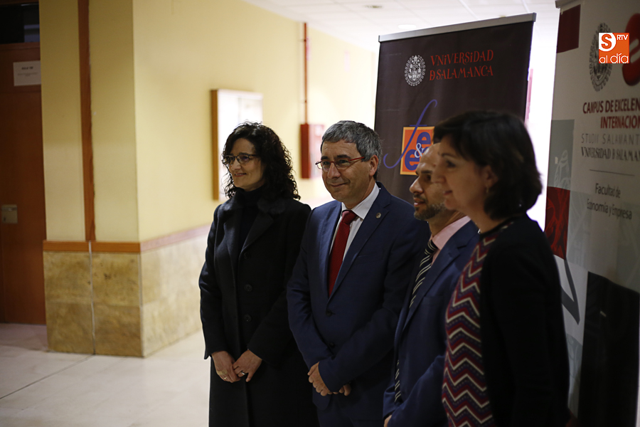 El vicerrector de Promoción y Coordinación, José Ángel Domínguez, y la directora del Servicio de Promoción, Información y Orientación (SPIO), Dolores Merchán, han inaugurado este miércoles, en la Facultad de Economía, las Jornadas de Puertas Abiertas en el campus de Salamanca.