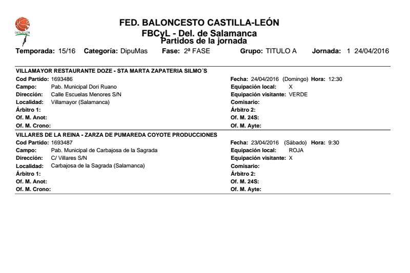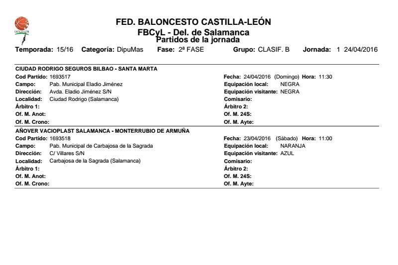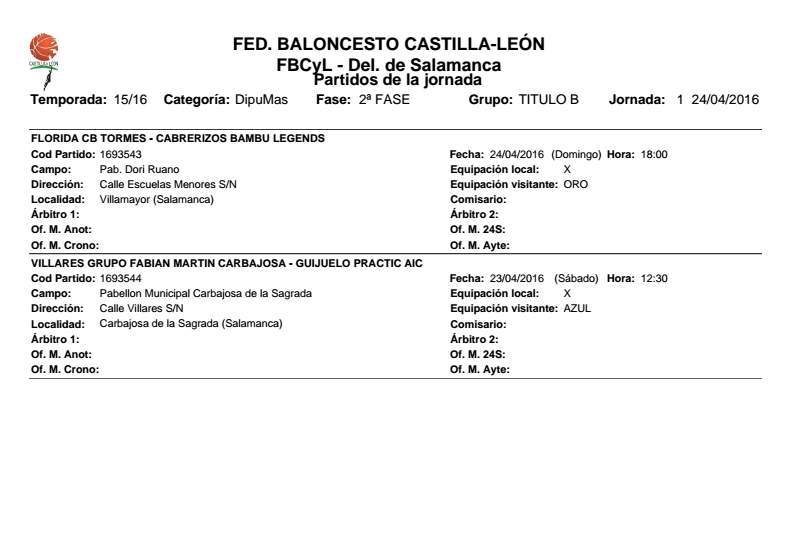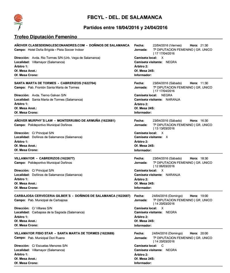 Se adjuntan los horarios OFICIALES de los SEIS partidos que hay pendientes de jugarse de jornadas anteriores, que son los que se jugarán el fin de semana del 23 y 24 de abril.