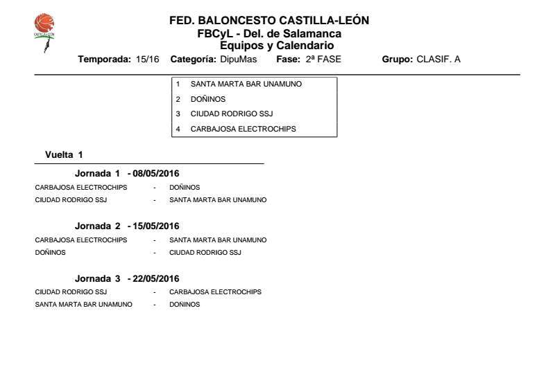 Se adjuntan los calendarios de la segunda fase, tanto de los dos grupos que lucharán por el acceso a