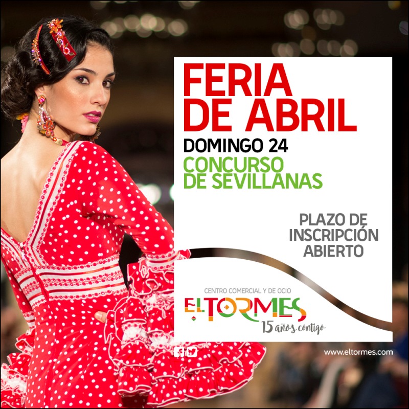 Con motivo de la Feria de Abril que se está celebrando durante estos días, el Centro Comercial El Tormes ha organizado para el próximo domingo día 24 de abril un Concurso de Sevillanas en el que puede participar de forma gratuita todo aquél que lo desee. Saber bailar sevillanas, tener al menos una pareja de baile e inscribirse previamente son los requisitos necesarios para poder participar en este concurso.